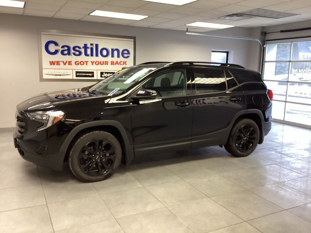 Recent Arrival! This 2020 GMC Terrain SLE in Ebony Twilight Metallic features: AWD, 2 USB Data Ports w/Auxiliary Input Jack, 6-Speaker Audio System Feature, 8-Way Power Driver Seat Adjuster, Adaptive Cruise Control - Camera, Apple CarPlay/Android Auto, Black GMC Center Caps w/Black GMC Lettering, Black Mirror Caps, Bluetooth® For Phone, Darkened Front Grille, Driver & Front Passenger Heated Seats, Driver Alert Package I, Driver Convenience Package, Dual-Zone Automatic Climate Control, Electronic Stability Control, Elevation Edition, Exterior Parking Camera Rear, Fully automatic headlights, Heated door mirrors, Lane Change Alert w/Side Blind Zone Alert, Lane Departure Warning System, Outside Heated Power-Adjustable Mirrors, Power Driver Lumbar Control, Power Programmable Rear Liftgate, Power windows, Preferred Equipment Group 3SA, Radio: GMC Infotainment Audio System w/7 Display, Rear Cross-Traffic Alert, Rear Park Assist, Remote keyless entry, Remote Start, Roof-Mounted Luggage Rack Black Side Rails, Safety Alert Seat, Skyscape Power Sunroof w/Power Sunscreen, Telescoping steering wheel, Tilt steering wheel, Traction control, Variably intermittent wipers, Wheels: 19 x 7.5 Gloss Black Painted Aluminum. 1.5L DOHC AWD CARFAX One-Owner.