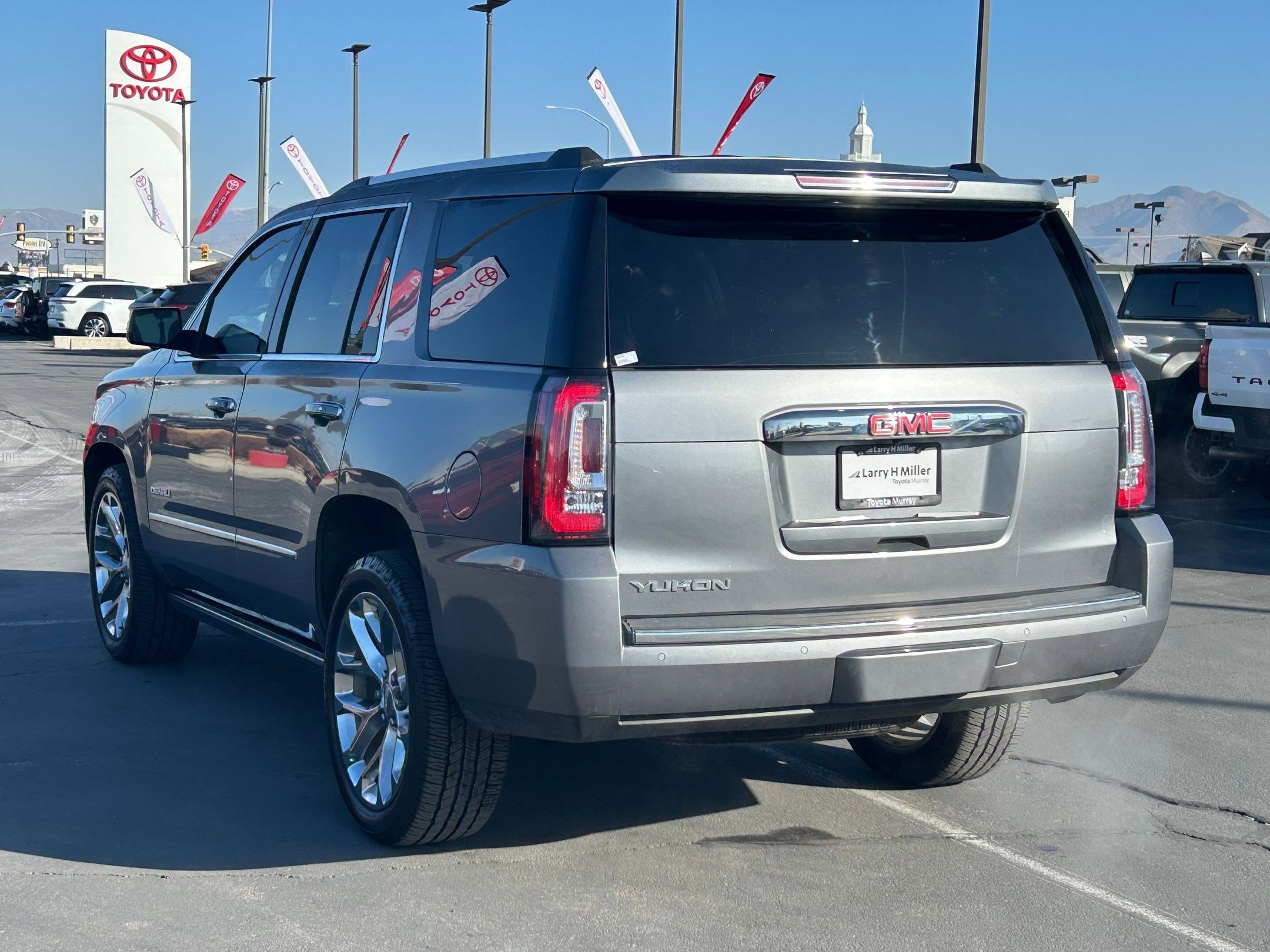Satin Steel Metallic 2020 GMC Yukon Denali RWD 10-Speed Automatic with Overdrive EcoTec3 6.2L V8 Fresh trade, complete service and inspection just done, super clean, non smoker, fresh oil change, Yukon Denali, Satin Steel Metallic, Jet Black Leather, Denali Premium Package, Power Tilt-Sliding Sunroof w/Express-Open/Close, power Retractable Assist Steps w/Perimeter Lighting, Wheel Locks, Wheels: 22 x 8.5 Bright Aluminum. Larry H Miller Toyota in Murray has been helping people with their vehicle purchase for over 40 years. Recent Arrival! Thank you for choosing Larry Miller Toyota in Murray Utah for your next vehicle purchase. We have access to thousands of vehicles. For further questions or inquiries about this vehicle please call 1-801-264-3800 or come see us at 5650 South State Street in Murray Utah.