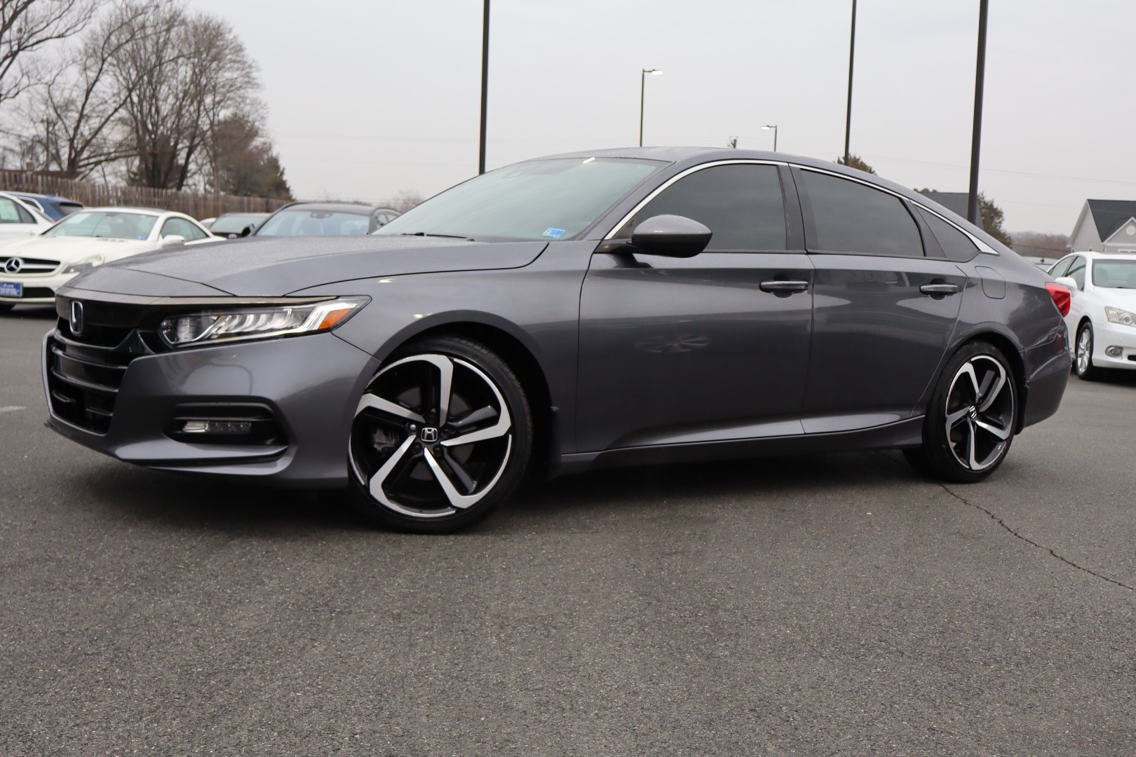 2020 Honda Accord 1.5T Sport Sedan. Well maintained, Gray with Black partial leather interior, well equipped with Adaptive Cruise Control, Lane Departure Warning, Front Collision Warning, ABS Brakes, Air Conditioning, Alloy Wheels, AM/FM Stereo, Android Auto, Apple CarPlay, Automatic Transmission, Auxiliary Audio Input, Bluetooth Technology, Partial leather seats, Overhead airbags, Power locks, Power mirrors, Power seat(s), Power windows, Rear defroster, Rear spoiler, Rear view camera, Smart key, Side airbags, Traction control, Turbocharged engine. Financing and extended service plans available. Online price includes military discount. No warranty information available.