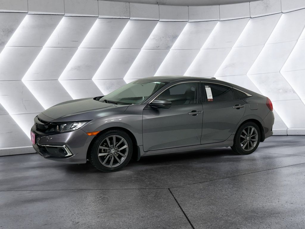 Discover the perfect blend of style, performance, and technology in this 2020 Honda Civic EX. This sleek and sophisticated sedan boasts a stunning Gray exterior, complemented by a well-appointed interior that caters to your every need. Enjoy the convenience of keyless entry, remote start, and the power moonroof, which add an extra touch of luxury to your daily commute. Stay connected with the advanced infotainment system, featuring a 180-Watt AM/FM/HD/SiriusXM Audio System, Apple CarPlay, and Android Auto integration. Maintain optimal comfort with the dual-zone automatic climate control, heated front seats, and the power-adjustable driver's seat. Experience the thrill of the turbocharged 1.5L I-4 DI DOHC engine, which delivers an impressive 32 city/42 highway MPG, ensuring exceptional fuel efficiency without compromising performance. Enhance your driving experience with the intuitive steering wheel-mounted controls, four-wheel independent suspension, and the advanced safety features, including Collision Mitigation Braking System, Lane Keeping Assist, and Adaptive Cruise Control. Enjoy the peace of mind that comes with the comprehensive Honda Sensing suite of driver-assistive technologies, providing an extra layer of protection on the road. This 2020 Honda Civic EX is the perfect blend of style, technology, and performance, making it an exceptional value in the compact car segment. Visit our showroom today to experience the difference for yourself and discover why the Civic is the benchmark for its class.