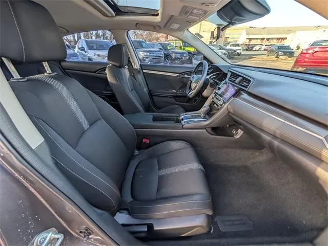 Discover the 2020 Honda Civic EX, a stylish and reliable sedan that combines sporty performance with modern comfort. Crafted with a sleek Modern Steel Metallic exterior and a refined black interior, this used Civic offers an engaging drive with its 1.5-liter turbocharged four-cylinder engine delivering 174 horsepower and 162 lb-ft of torque. Weighing approximately 0.5973 tons, this vehicle features a smooth CVT automatic transmission and front-wheel drive, making it an ideal choice for daily commuting and weekend adventures alike. With nearly 100,000 miles, this Civic has been well-maintained and is ready to provide its next owner with exceptional fuel efficiency—32 mpg city and 42 mpg highway—while offering a suite of advanced features such as adaptive cruise control, Apple CarPlay, a backup camera, blind spot monitoring, Bluetooth connectivity, collision warning, fog lights, heated seats, keyless entry, lane keep assist, a push start button, satellite radio readiness, and a sunroof/moonroof. The spacious four-door sedan comfortably seats five, making it perfect for families or those who value versatility and style.