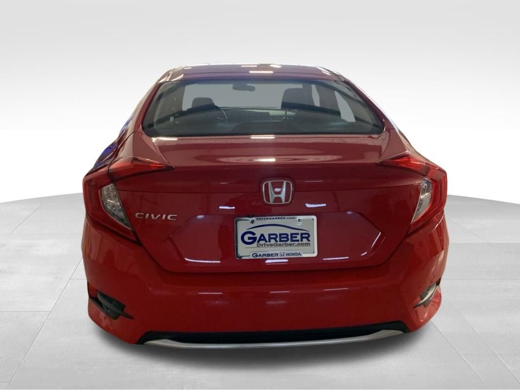 Discover the perfect balance of style, efficiency, and technology in this 2020 Honda Civic LX. With its sleek red exterior and well-appointed interior, this compact sedan is ready to elevate your driving experience. The 2.0L I4 DOHC 16V i-VTEC engine paired with a CVT transmission delivers an impressive 30 city/38 highway MPG, making this Civic a fuel-efficient and cost-effective choice. The four-wheel independent suspension and speed-sensing steering provide a smooth, responsive ride, while the four-wheel disc brakes with ABS ensure confident stopping power. Step inside the Civic LX and you'll be greeted by a well-appointed cabin featuring cloth seating, a 160-Watt AM/FM audio system, and dual-zone automatic climate control. Convenient features like remote keyless entry, power windows, and a tilt/telescopic steering wheel add to the overall comfort and convenience. Safety is a top priority with this Civic, boasting a suite of advanced driver-assist technologies. Dual front and side impact airbags, an anti-roll bar, and Electronic Stability Control work together to provide a secure and confident driving experience. Whether commuting or embarking on a weekend adventure, this 2020 Honda Civic LX is ready to exceed your expectations. Experience the perfect blend of style, efficiency, and technology that this compact sedan has to offer. Visit our showroom today and let us demonstrate how this Civic can elevate your driving experience.