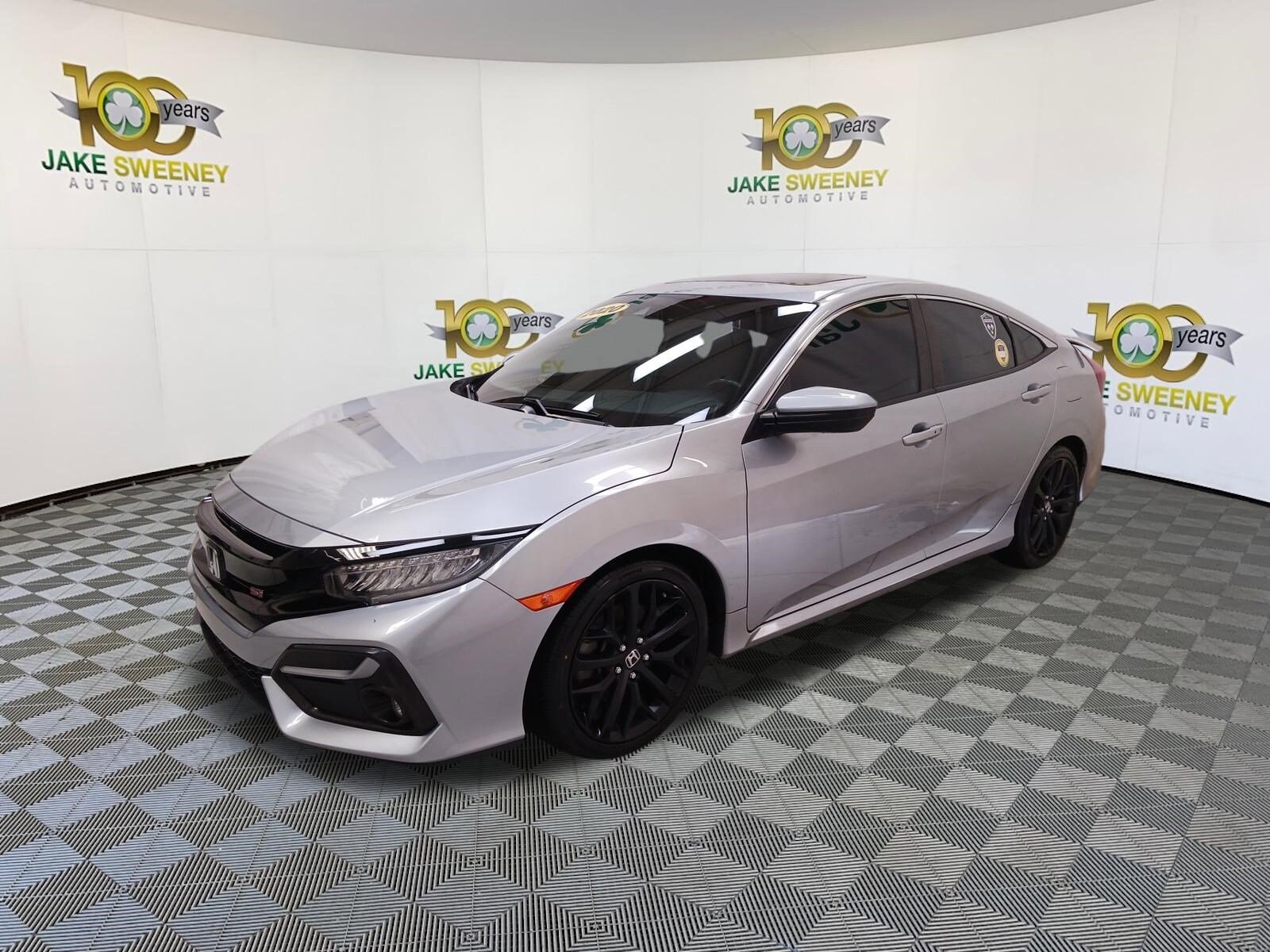 A performance icon, our 2020 Honda Civic Si Sedan is ready to sprint into your driveway with a striking Lunar Silver Metallic exterior! Motivated by a TurboCharged 1.5 Liter 4 Cylinder offering 205hp matched to a close-ratio 6 Speed Manual transmission that keeps you connected to the road at all times. This Front Wheel Drive sedan achieves nearly 36mpg on the highway, plus it is fun-to-drive at any speed thanks to race-inspired features like a helical limited-slip differential, a responsive suspension, and a dedicated Sport mode to kick it up a notch. The Civic Si also resembles a racecar with a wing-style rear spoiler, aggressive bumpers, 18-inch alloy wheels, a sunroof, and bold LED headlights. Our Si cabin adds comfort and convenience to your benefits with its supportive heated front seats, leather-wrapped steering wheel, textured aluminum pedals, dual-zone automatic climate control, and advanced technology. It's all anchored by a high-tech infotainment system with a 7-inch touchscreen and voice commands to control Android Auto®, Apple CarPlay®, Bluetooth®, and a 10-speaker sound system for a rocking soundtrack. Honda then goes all-in on safety with a backup camera and the Sensing suite of features, including automatic emergency braking, forward-collision warning, lane-keeping assistance, and more. Check out this award-winning Civic Si before someone else drives it home! Save this Page and Call for Availability. We Know You Will Enjoy Your Test Drive Towards Ownership!
