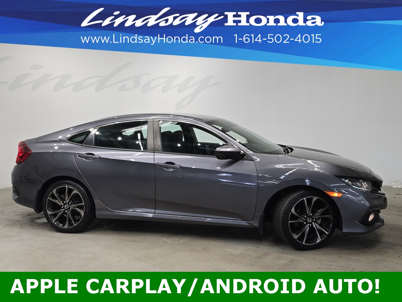 Modern Steel Metallic 2020 Honda Civic Sport FWD CVT 2.0L I4 DOHC 16V i-VTEC Bluetooth, Apple CarPlay, Android Auto, Adaptive Cruise Control, Power Package, Remote Start, Backup Camera, Clean Auto Check, One Owner. Recent Arrival! Odometer is 6913 miles below market average! 29/37 City/Highway MPG Why buy from Lindsay? 1. One of the Nation’s largest volume Certified Pre-owned dealers. 2. Higher quality cars - $1800 average in reconditioning. 3. Service records furnished before you buy. 4. Vehicle History Report furnished before you buy. 5. Warranties on most cars under 25K miles.