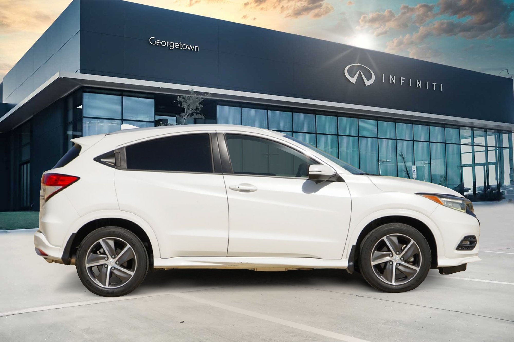 Recent Arrival! HR-V 17" Machine-Finished Alloy Wheels, 6 Speakers, Apple CarPlay/Android Auto, Auto High-beam Headlights, Auto-dimming Rear-View mirror, Automatic temperature control, Brake assist, Electronic Stability Control, Exterior Parking Camera Rear, Forward collision: Collision Mitigation Braking System (CMBS) + FCW mitigation, Front anti-roll bar, Front Bucket Seats, Front fog lights, Front wheel independent suspension, Fully automatic headlights, Heated door mirrors, Heated Front Bucket Seats, Heated front seats, Honda Satellite-Linked Navigation System, Leather-Trimmed Seat Trim, Navigation System, Power door mirrors, Power moonroof, Radio data system, Radio: AM/FM/HD Audio System (180-Watt), Rear anti-roll bar, Remote keyless entry, Roof rack: rails only, Security system, SiriusXM Radio, Speed-sensing steering, Split folding rear seat, Spoiler, Steering wheel mounted audio controls, Telescoping steering wheel, Tilt steering wheel, Traction control, Turn signal indicator mirrors. Platinum White Pearl CARFAX One-Owner. Clean CARFAX. Buy from Georgetown INFINITI, the newest luxury dealership in Central Texas. Call us today 888-458-5244 or see all of our inventory at www.GeorgetownInfiniti.com.