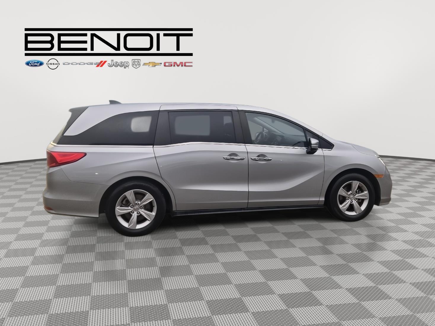 Rev up your engines, folks, because we've got the used cars of your dreams at Benoit Motors! Our lot is jam-packed with the coolest rides around, from sleek sports cars to rugged SUVs. But that's not all - we've got financing available for everyone, so you can hit the road in style without breaking the bank. And all of our used cars go through a rigorous 120-point inspection, so you know you're getting a reliable ride that's built to last. At Benoit Motors, we're the go-to dealer for all your used car needs. Our friendly and knowledgeable staff are here to help you find the perfect car for your lifestyle and budget. So come on down and test drive your dream ride today! But be warned - once you get behind the wheel of one of our used cars, you won't want to leave without it. So what are you waiting for? Come see us at Benoit Motors and let the good times roll! 2020 Honda Odyssey EX-L w/Navi/RES Lunar Silver Metallic with Mocha Interior.