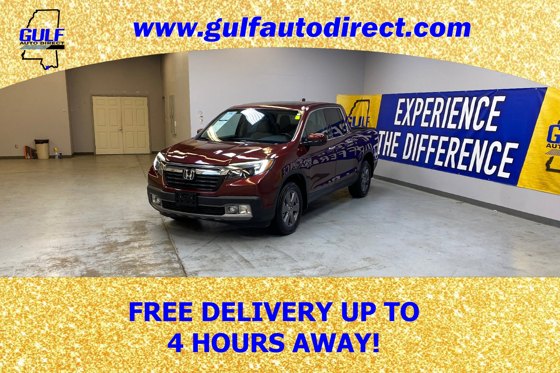 Deep Scarlet Pearl 2020 Honda Ridgeline RTL-E AWD 9-Speed Automatic 3.5L V6 SOHC i-VTEC 24V. Gulf Auto Direct proudly serving the Waveland, Bay St. Louis, Long Beach, Gulfport, Diamondhead, Kiln, Brookhaven, McComb and Hattiesburg, Mississippi, Hammond, Slidell, Baton Rouge, Mandeville, Metairie, New Orleans, Louisiana and beyond! If you’re looking for your next pre-owned, program or used car, trucks and SUV we have something for every taste, and every need. If you are asking yourself what is my trade worth we can help you answer that! Good or bad credit our financing department can offer you competitive loan or lease financing options. We will ship to anywhere in the US! Call us or visit us anytime www.gulfautodirect.com.