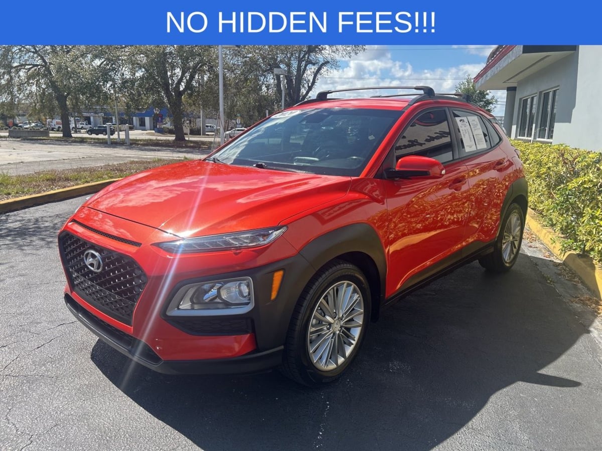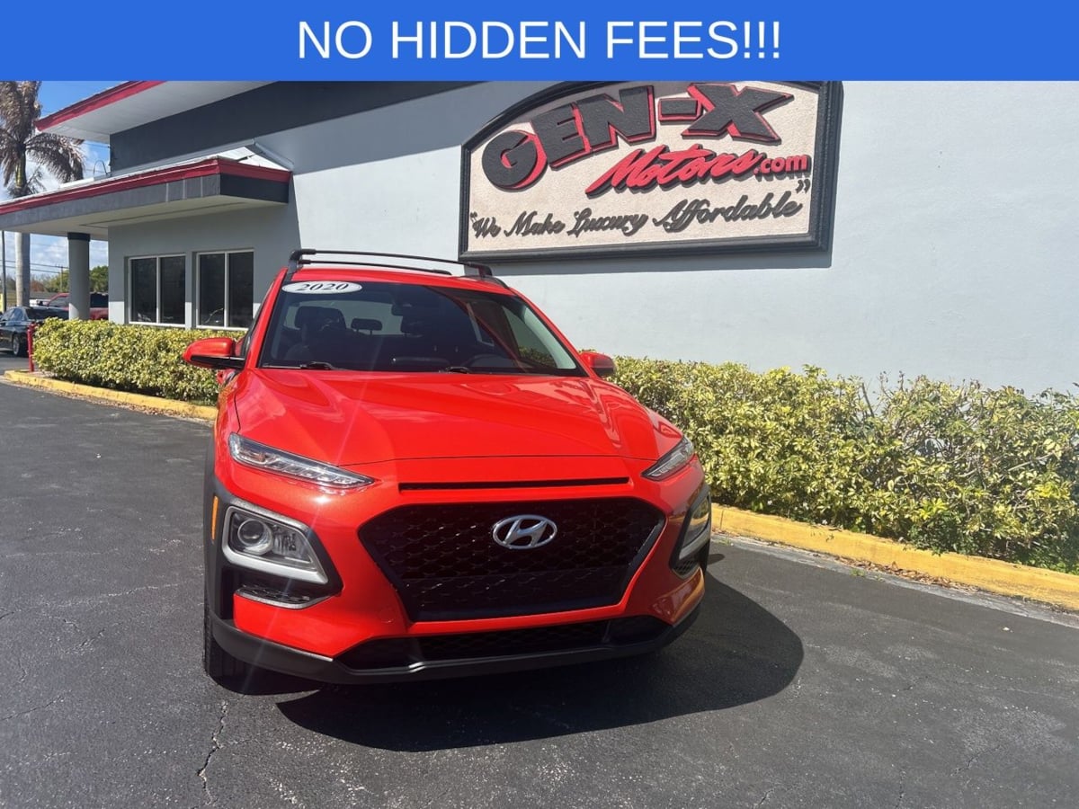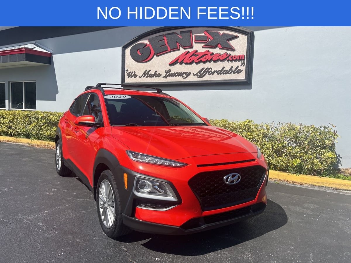 The 2020 Hyundai Kona SEL Auto FWD is a captivating compact SUV, radiating a vibrant personality with its eye-catching Sunset Orange exterior. This dynamic vehicle is designed for those who appreciate both style and functionality, boasting an aesthetic that turns heads on any road. The sleek, modern lines of the body are accentuated by its bold color choice, making it a distinctive presence in any setting. Inside, the Kona offers a refined environment, featuring black cloth seat trim that complements its energetic exterior. The thoughtfully arranged interior includes carpeted floor mats and a cargo net, providing both comfort and practicality for passengers and their belongings. The vehicle is equipped with option group 01, ensuring a comprehensive selection of features that enhance your driving experience. Under the hood, the Kona is powered by a robust 2.0L 4-cylinder engine, delivering smooth performance that is perfect for urban commuting and weekend adventures alike. The front-wheel-drive system enhances fuel efficiency and handling, ensuring a responsive and enjoyable drive. Additional features like the convenient cross rails make it easy to transport large items, adding to the vehicle's overall versatility. This Hyundai Kona SEL Auto FWD embodies a perfect blend of design, efficiency, and utility, making it a superb choice for discerning drivers.