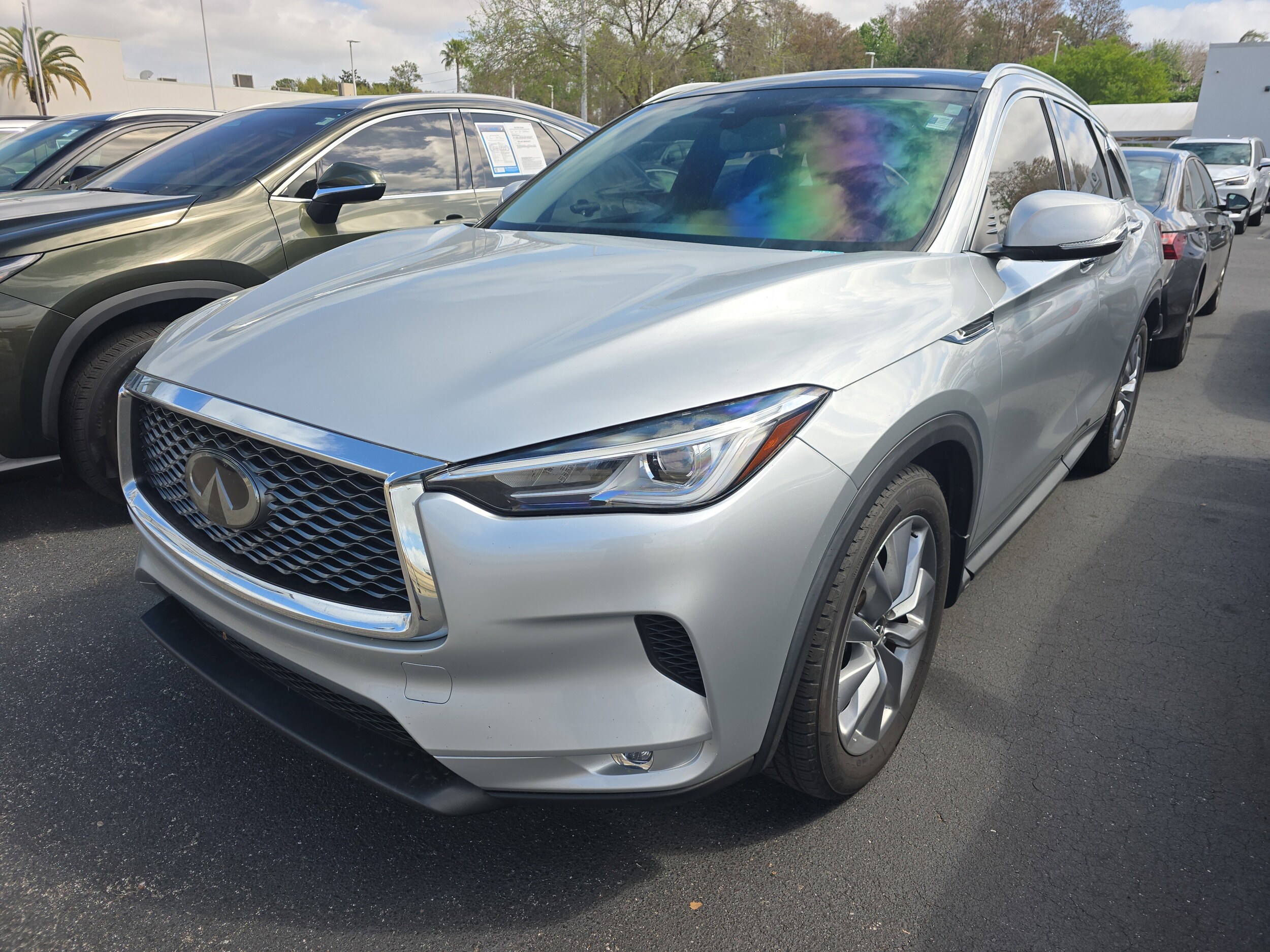 The 2020 INFINITI QX50 LUXE FWD is a used vehicle located at Fields BMW Winter Park. It features a Liquid Platinum exterior and Graphite interior, and is equipped with a turbocharged 2.0L engine and a continuously variable automatic transmission. The QX50 offers a comfortable and luxurious driving experience, with advanced safety features and a spacious interior for up to five passengers.