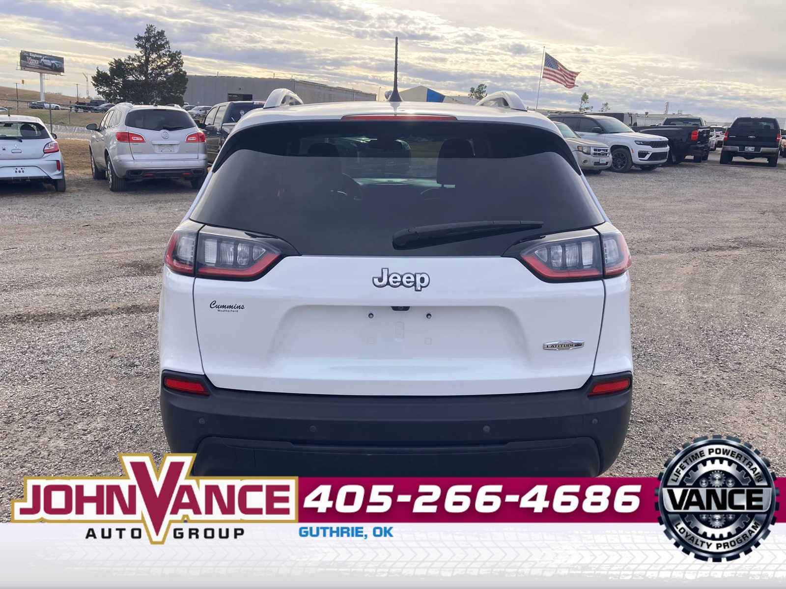 CARFAX 1-Owner. Latitude Plus trim. EPA 31 MPG Hwy/22 MPG City! Bluetooth, IPOD/MP3 INPUT, SATELLITE RADIO, ENGINE: 2.4L I4 ZERO EVAP M-AIR WITH ES... Aluminum wheels, transmission: 9-speed 948TE automatic. Jeep Latitude Plus with bright white clearcoat and Black interior features a 4 cylinder engine with 180 HP at 6400 RPM. Jeep Latitude Plus with Black interior and Bright White exterior and Black interior features a 4 cylinder engine with 200 HP at 6400 RPM. The John Vance Auto Group is a comfortable place to buy a car. For over 40 years John Vance Group has been a comfortable place to buy a car. Serving the Oklahoma City metro area and with 11 domestic makes to choose from we are sure you can find the next car, truck or SUV of your dreams. The John Vance Auto Group is located just minutes north of Oklahoma City in Guthrie, OK on I-35 exit 153. Come see why the John Vance Auto Group is a comfortable place to buy a car. All prices include all applicable rebates and incentives. Horsepower calculations based on trim engine configuration. Fuel economy calculations based on original manufacturer data for trim engine configuration.
