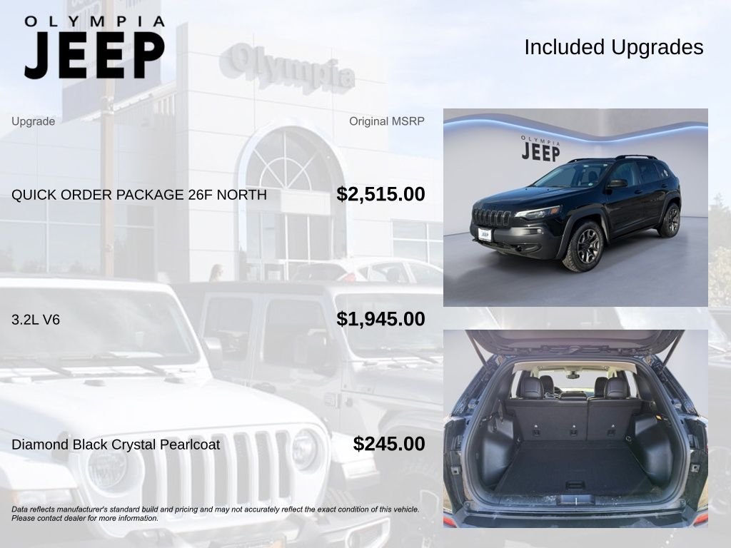 This 2020 Jeep Cherokee 75th Anniversary Edition is a truly impressive vehicle that combines rugged capability with premium features and comfort. Powered by a robust 3.2L V6 engine and equipped with 4-wheel drive, this Cherokee is ready to take on any adventure, whether it's conquering off-road trails or navigating the daily commute. The exterior of this Cherokee stands out with its Black paint and unique 75th Anniversary styling cues, including Liquid Titanium accents, Gloss Black badges, and Off-Road wheel flares. Step inside and you'll be greeted by a well-appointed interior that offers the perfect blend of style and technology. The 8.4" touchscreen display puts a wealth of features at your fingertips, including built-in navigation, HD Radio, and SiriusXM satellite radio. Comfort and convenience are key with this Cherokee. Heated front seats and a heated steering wheel ensure you stay cozy, even on the coldest days. The power driver's seat with lumbar support provides exceptional support and customization. And with features like remote start, a Wi-Fi hotspot, and a full suite of advanced safety technologies, this Jeep is designed to make your life easier and your driving experience more enjoyable. Whether you're tackling the great outdoors or navigating the urban jungle, this 2020 Jeep Cherokee 75th Anniversary Edition is the perfect companion. With its impressive capabilities, premium amenities, and head-turning style, it's a vehicle that truly stands out from the crowd. We invite you to come experience it for yourself at Olympia Jeep. Schedule a test drive today and discover the difference that this exceptional Jeep can make in your life.