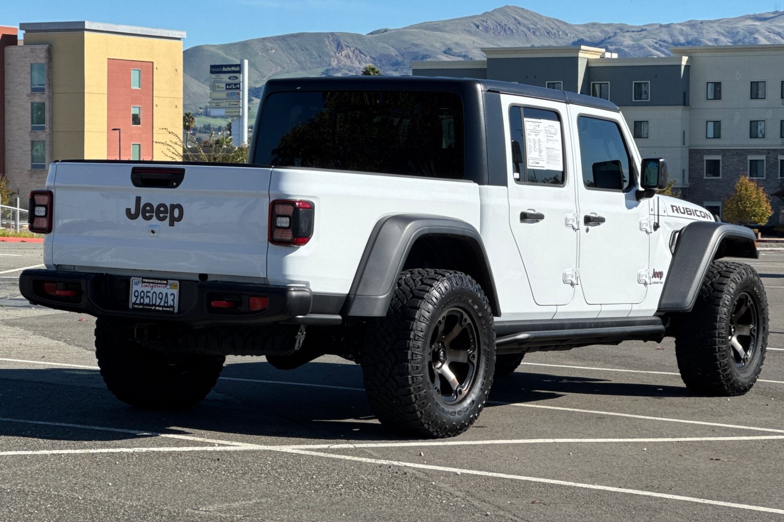 Bright White Clearcoat 2020 Jeep Gladiator Rubicon 4WD 8-Speed Automatic 3.6L V6 24V VVT. Odometer is 12591 miles below market average! Vehicle may have dealer added equipment not reflected in price. All vehicle Offer Prices are subject to final approval by the buyer and Dealer. Vehicles are subject to prior sale by Dealer if sale to buyer is not consummated. The List Price quoted is intended to provide a general idea of the vehicle's price and may vary or be modified by the dealer to reflect optional features, after-market additions, customizations or similar enhancements to a vehicle that are not standard market adjustments used in the MSRP. As a result, the price listed may be adjusted by the dealer to reflect such enhancements. Please consult directly with the dealership for more information. All vehicles at Fremont CDJR have ALLY Appearance Protection $1295, Clear Shield $395, SWAT Recovery System $995, Windshield Replacement $895, Lifetime Battery $695. Prices on the website do not include dealer-added equipment.