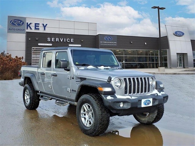 Odometer is 26276 miles below market average! We make the car buying process very simple by displaying the lowest price on the window. We price our vehicles more aggressively than anyone else in the area. For that reason, we're proud to display it on every vehicle's window. We believe there is more to buying a vehicle than worrying about the price. For that reason, Key Auto has simplified that process for our customers. When we price a vehicle, we take the following into consideration: 1) market conditions, 2) what the area dealers are selling them for, 3) Kelly Blue Book retail. This way, when you leave a Key Auto Dealership, you're confident you've received the absolute best deal. Please call 207-594-4466 or come to Key Ford of Rockland today. 2020 Jeep Gladiator Sport 4D Crew Cab Billet Silver Metallic Clearcoat Sport 3.6L V6 24V VVT 8-Speed Automatic 4WD Clean CARFAX. Key Ford of Rockland is proud to present you with another True Market Priced Pre-Owned Vehicle. Transparent Pricing Of $28405 !! This 2020 Jeep Gladiator Sport is loaded with the following Factory Options: Quick Order Package 24S (Automatic Headlamps, Deep Tint Sunscreen Windows, Front 1-Touch Down Power Windows, Leather Wrapped Steering Wheel, Normal Duty Plus Suspension, Power Heated Mirrors, Power Tailgate Lock, Remote Keyless Entry, Security Alarm, Speed Sensitive Power Locks, Sun Visors w/Illuminated Vanity Mirrors, and Wheels: 17" x 7.5" Tech Silver Aluminum), Trailer Tow Package (240 Amp Alternator, Class IV Hitch Receiver, Heavy-Duty Engine Cooling, and Trailer Hitch Zoom), 1-Year SiriusXM Radio Service, 110 mph Vehicle Max Speed Calibration, 3.73 Rear Axle Ratio, 4-Wheel Disc Brakes, 8 Speakers, ABS brakes, Air Conditioning, All-Weather Slush Mats, AM/FM radio, Anti-Lock 4-Wheel Disc Heavy Duty Brakes, Black 3-Piece Hard Top, Brake assist, Cloth Low-Back Bucket Seats, Compass, Delay-off headlights, Driver door bin, Driver vanity mirror, Dual front impact airbags, Dual front side impact airbags, Electronic Stability Control, For More Info, Call 800-643-2112, Freedom Panel Storage Bag, Front anti-roll bar, Front Bucket Seats, Front Center Armrest w/Storage, Front fog lights, Front reading lights, GPS Antenna Input, Integrated roll-over protection, Low tire pressure warning, No Soft Top, Normal Duty Suspension, Occupant sensing airbag, Outside temperature display, ParkView Rear Back-Up Camera, Passenger door bin, Passenger vanity mirror, Power steering, Radio data system, Radio: Uconnect 3 w/5" Display, Rear anti-roll bar, Rear reading lights, Rear Sliding Window, Rear Window Defroster, SiriusXM Satellite Radio, Speed control, Split folding rear seat, Spray In Bedliner, Steering wheel mounted audio controls, Tachometer, Telescoping steering wheel, Tilt steering wheel, Traction control, Trip computer, Variably intermittent wipers, and Wheels: 17" x 7.5" Black Steel Styled!!