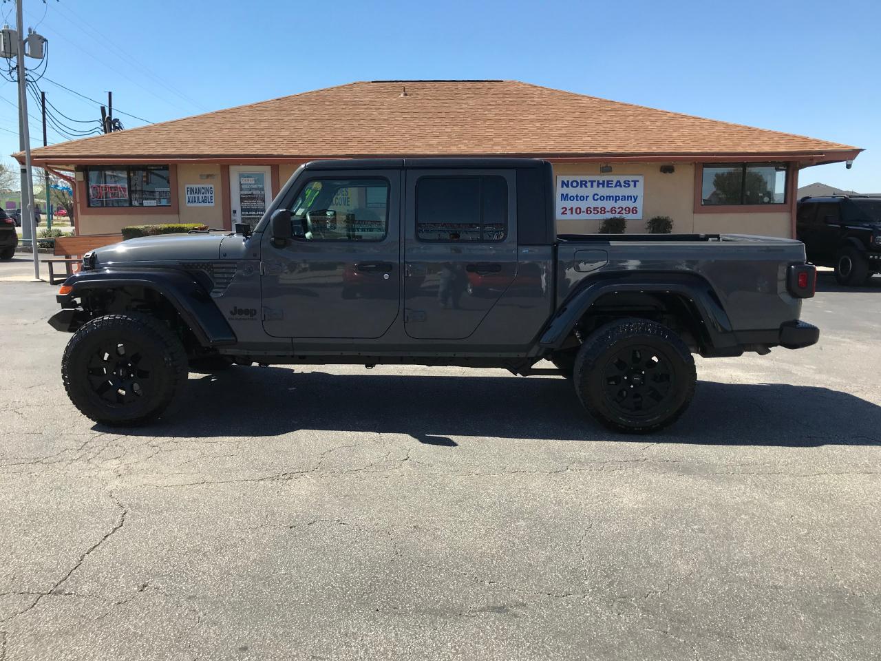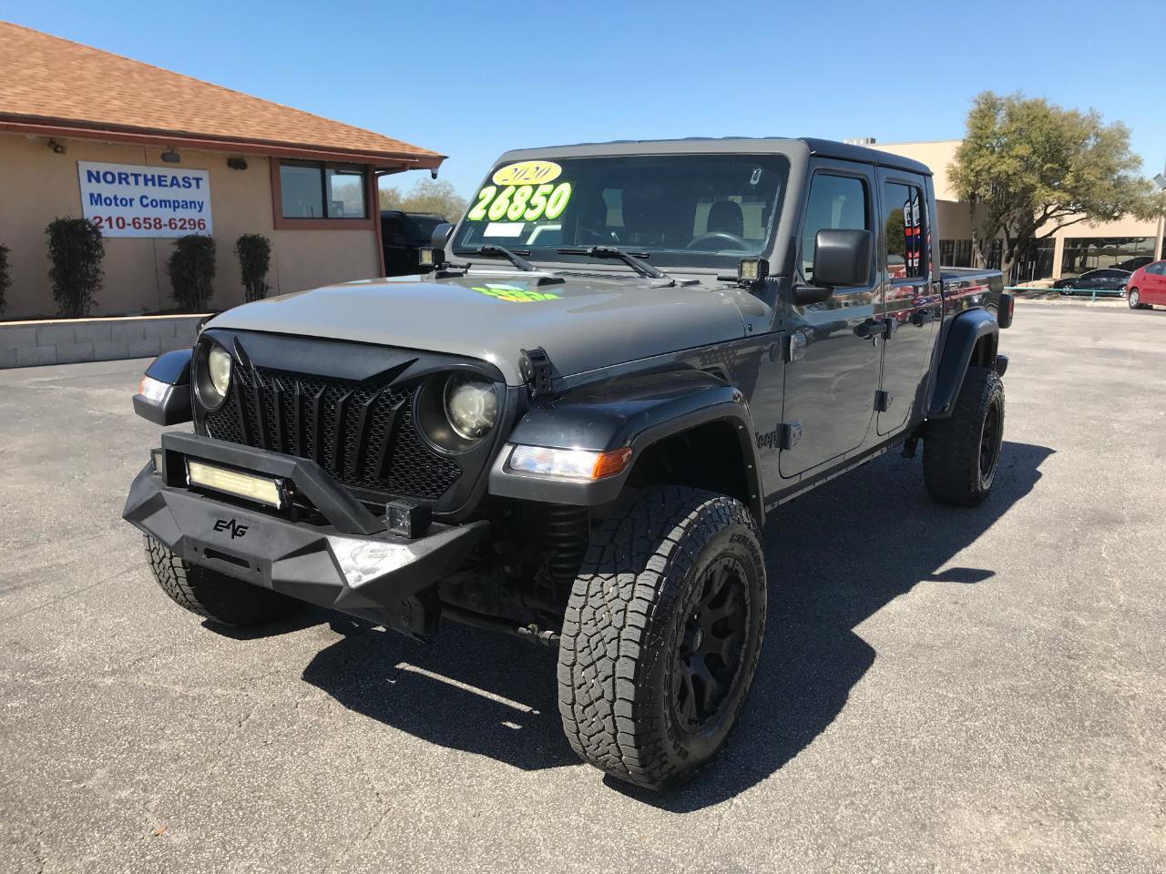 Northeast Motor Company, www.northeastmotorco.com, 2402 Pat Booker Rd., Universal City, TX 78148, 210-658-6296. 2020 Jeep Gladiator 4x4 Sport! Equipped with a 285 Horsepower 3.6L V6 Engine, 8 Speed Automatic Transmission, Four Wheel Drive, 3 Piece Freedom Top, Backup Camera, Bluetooth, Auxiliary Audio Input with USB Interface, Air Conditioning, Power Windows/Locks/Mirrors, Steering Wheel Mounted Audio Controls, Cruise Control, Keyless Entry, Push Button Starting, Remote Start, Aluminum Alloy Wheels, and more! Call or come out today to inquire about our easy financing options and many available extended warranties. We finance! Zero down W.A.C. Be sure to check out our Google reviews! We are proud to be a USAA Certified, RBFCU Certified, True Car Certified, and Car Gurus Top Rated dealership. We are a small family-owned used car dealership in Universal City, Texas just on the border of San Antonio. We've been doing business in the San Antonio area for over 30 years. You can check out our website at www.northeastmotorco.com to see what we normally stock. Thank you so much for looking and we look forward to doing business with you!