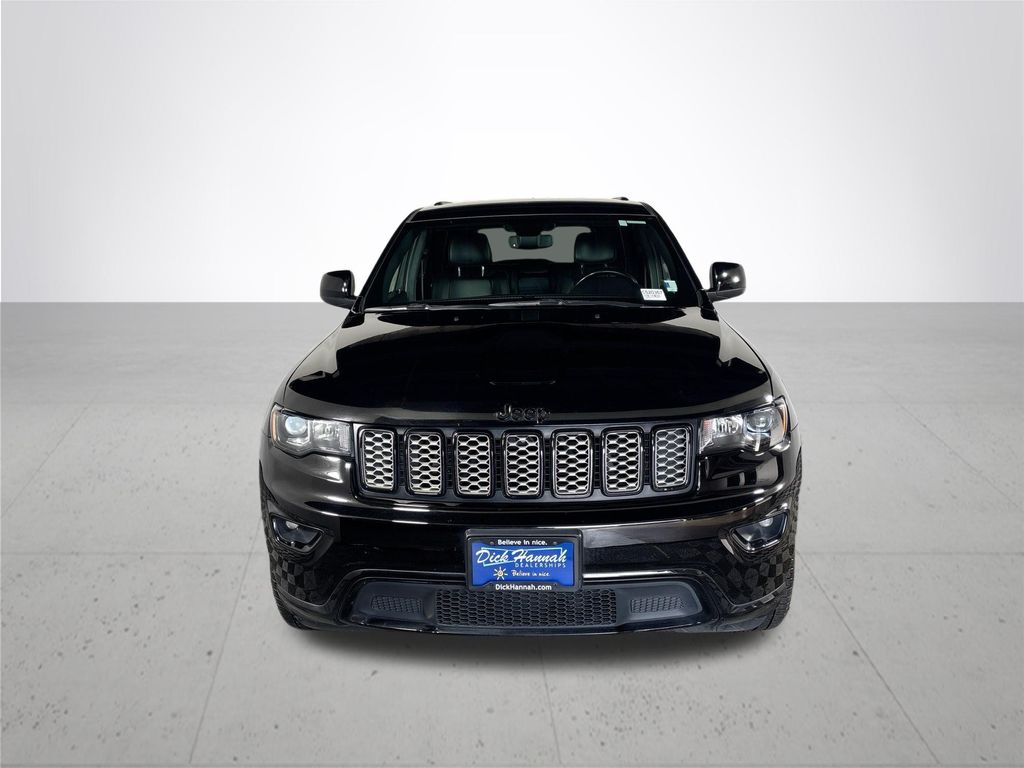 Performed maintenance: including oil & filter change, cabin & engine air filter, wiper blades, professional detail, and 100+ point safety & mechanical inspection. Carfax One-Owner. Grand Cherokee Altitude, 4D Sport Utility, 3.6L V6 24V VVT, 8-Speed Automatic, 4WD, Diamond Black Crystal Pearlcoat, Black w/Cloth Bucket Seats or Black Suede Seats w/Black Stitching, 115V Auxiliary Power Outlet, Auto-Dimming Rear-View Mirror, Automatic temperature control, Body Color Shark Fin Antenna, Dark Lens Taillamps, Front dual zone A/C, Gloss Black Rear Fascia Applique, GPS Navigation, Jeep Black Gloss Badging, ParkView Rear Back-Up Camera, Power 4-Way Driver Lumbar Adjust, Power 8-Way Driver/Manual Passenger Seat, Quick Order Package 2BZ Altitude, Radio: Uconnect 4C Nav w/8.4" Display, Rear Fascia Black MIC Step Pad, Security & Convenience Group, Security Alarm, Steering Wheel Mounted Audio Controls, Universal Garage Door Opener, Variably intermittent wipers, Wheels: 20" x 8.0" Gloss Black Aluminum. This Dick Hannah used vehicle comes with limited warranty coverage of 100% labor and 100% parts for 12 months or 12,000 miles, whichever comes first. See dealership for full warranty details. See dealership representative for complete program details. Call and schedule your test drive experience today. You won't be disappointed. Open 7 days a week.