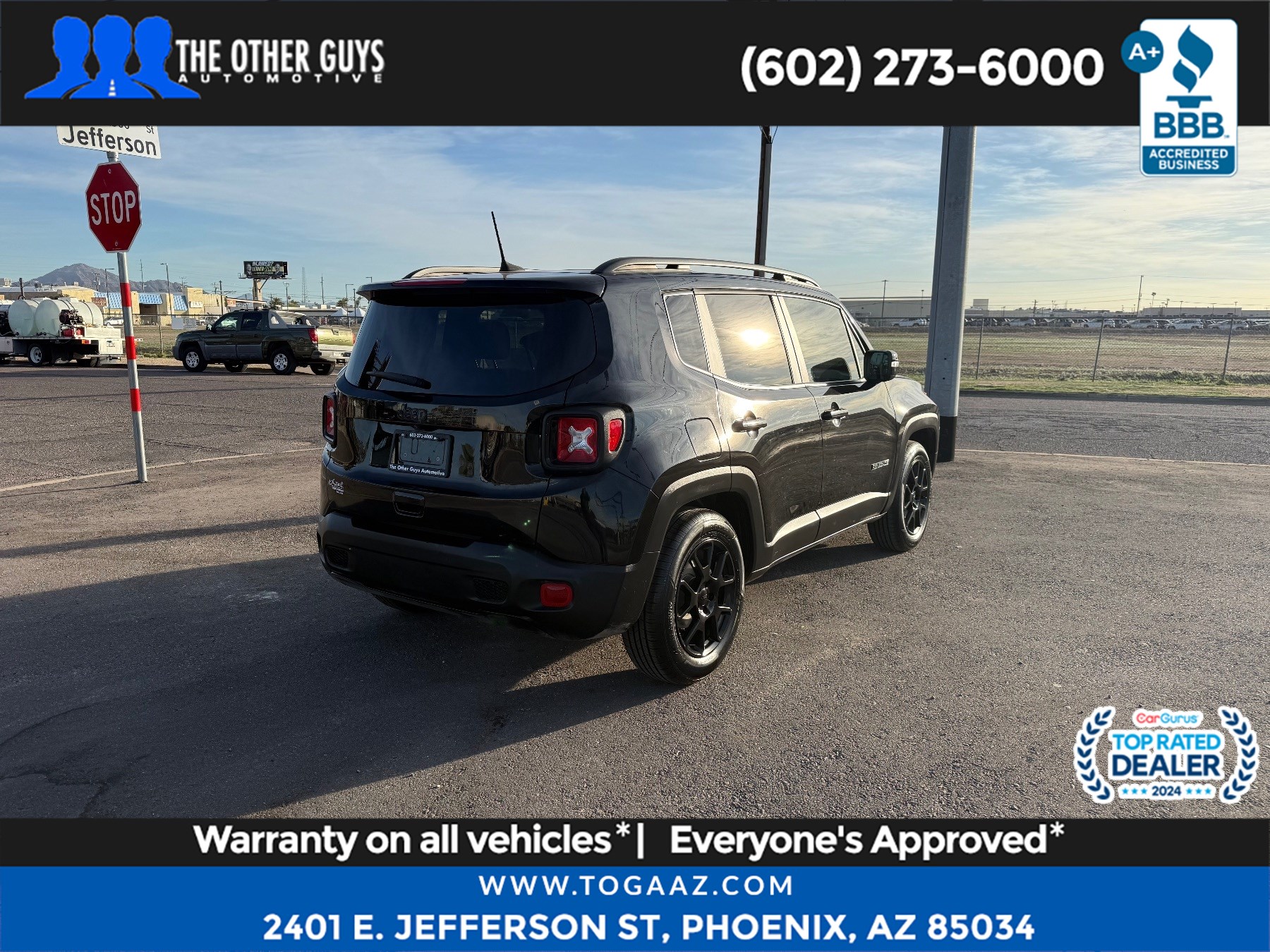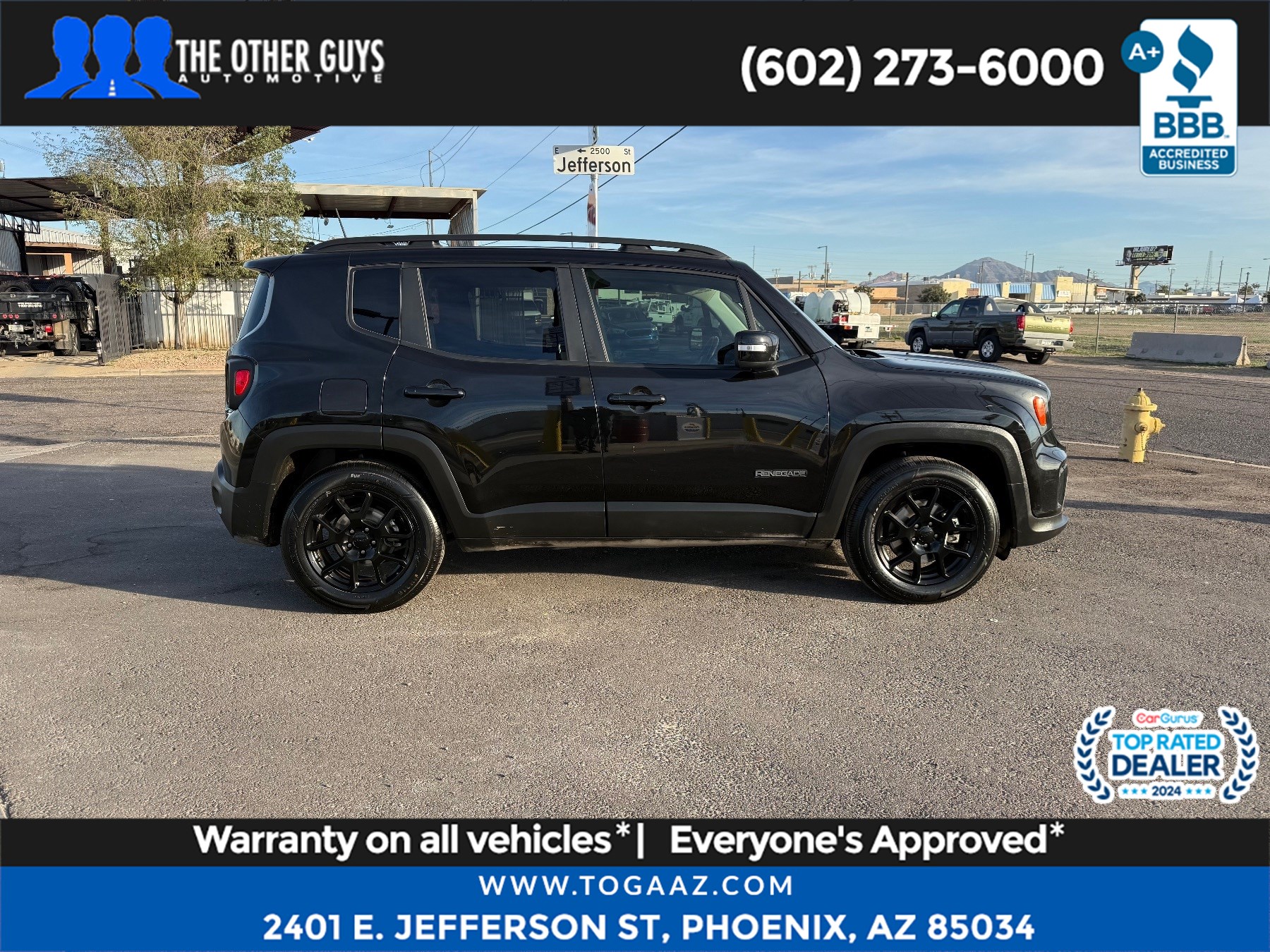 Our rugged 2020 Jeep Renegade Altitude is a special edition that's as unique as you are, with a bold Black exterior. Motivated by a 2.4 Liter Tigershark 4 Cylinder serving up 180hp tethered to a 9 Speed Automatic transmission that's ready for almost anything. This award-winning Front Wheel Drive SUV also reaches nearly 30mpg on the highway with a poised ride and road-friendly handling. For authentic Jeep style, check out the iconic seven-slot grille, mirror-mounted turn signals, and a gloss-black finish for the accents and alloy wheels. Gloss black also highlights the Altitude's sporty cabin, which raises the bar with deluxe cloth seats, a leather-wrapped steering wheel, air conditioning, and versatile cargo space with an adjustable rear load floor. There's plenty of room for technology as well, so you can enjoy a 5-inch Uconnect® touchscreen, a backup camera, Bluetooth®, and a six-speaker audio system as you explore your world. To keep you safe as you take advantage of real Jeep capability, you're protected by ABS, stability/traction control, hill-start assist, and advanced airbags that even include a knee airbag for the driver. Begin your next journey today in this fun-to-drive Renegade Altitude. Save this Page and Call for Availability. We Know You Will Enjoy Your Test Drive Towards Ownership!