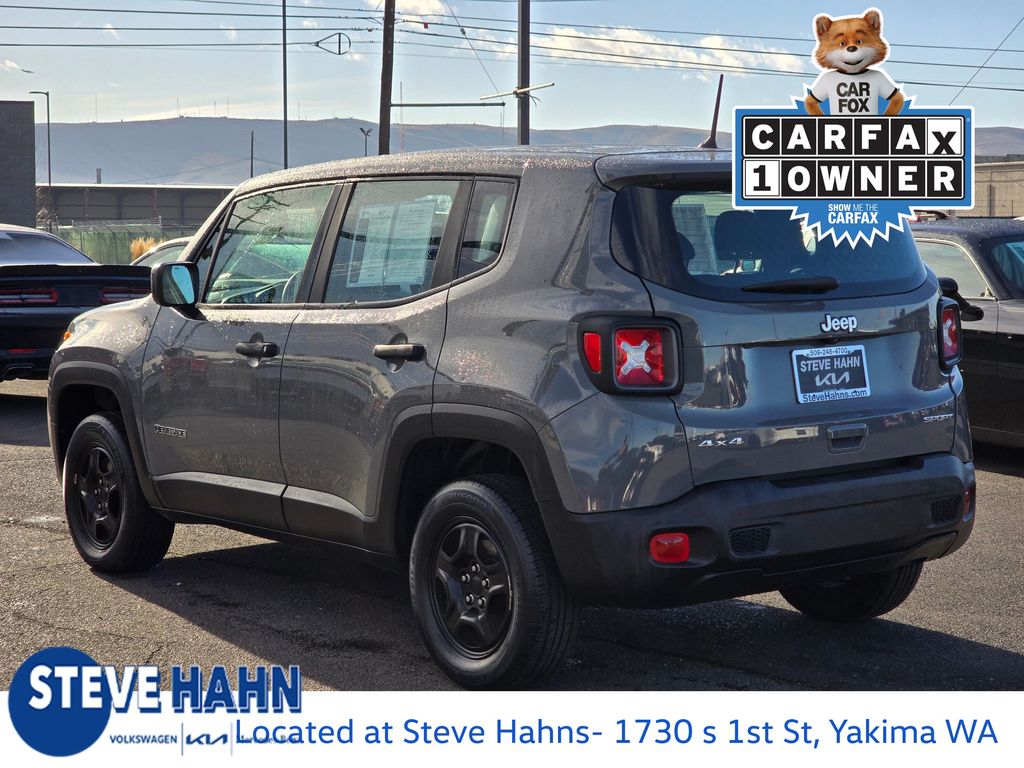Recent Arrival! Carfax One-Owner. Sting-Gray Clearcoat 2020 Jeep Renegade Sport 2.4L I4 9-Speed 948TE Automatic 4WD 4D Sport Utility 16" x 6.5" Styled Steel Wheels, 3.734 Final Drive Ratio, 4-Wheel Disc Brakes, 6 Speakers, ABS brakes, Air Conditioning, AM/FM radio, Anti-whiplash front head restraints, Brake assist, Cloth Low-Back Bucket Seats, Compass, Delay-off headlights, Driver door bin, Driver vanity mirror, Dual front impact airbags, Dual front side impact airbags, Electronic Stability Control, Emergency communication system, Four wheel independent suspension, Front anti-roll bar, Front Bucket Seats, Front Center Armrest, Front reading lights, Heated door mirrors, Illuminated entry, Knee airbag, Low tire pressure warning, Manufacturer's Statement of Origin, Normal Duty Suspension, Occupant sensing airbag, Outside temperature display, Overhead airbag, Panic alarm, ParkView Rear Back-Up Camera, Passenger door bin, Passenger vanity mirror, Power door mirrors, Power steering, Power windows, Quick Order Package 2XA, Radio data system, Radio: Uconnect 3 w/5" Display, Rear anti-roll bar, Rear window defroster, Rear window wiper, Remote keyless entry, Speed control, Split folding rear seat, Spoiler, Steering wheel mounted audio controls, Tachometer, Telescoping steering wheel, Tilt steering wheel, Traction control, Trip computer, Variably intermittent wipers, Voltmeter.