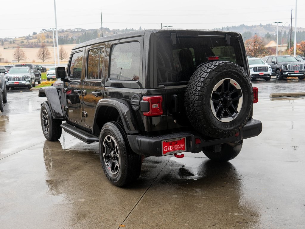 Clean CARFAX. Black Clearcoat 2020 Jeep Wrangler Unlimited Rubicon 4WD 8-Speed Automatic 2.0L I4 DOHC Odometer is 30469 miles below market average! 1-Year SiriusXM Guardian Trial, 240 Amp Alternator, 4-Wheel Disc Brakes, 4.10 Rear Axle Ratio, 4G LTE Wi-Fi Hot Spot, 5-Year SiriusXM Traffic Service, 5-Year SiriusXM Travel Link Service, 7 & 4 Pin Wiring Harness, 700 Amp Maintenance Free Battery, 8 Speakers, 8.4" Radio & Premium Audio Group, 8.4" Touchscreen Display, ABS brakes, Air Conditioning, Alloy wheels, Alpine Premium Audio System, AM/FM radio: SiriusXM, Apple CarPlay/Android Auto, Auto-Dimming Rear-View Mirror, Automatic temperature control, Aux Battery, Auxiliary Switches, BF Goodrich Brand Tires, Blind Spot & Cross Path Detection, Body Color Fender Flares, Brake assist, Cargo Compartment Floor Mat, Cargo Group w/Trail Rail System, Class II Receiver Hitch, Cold Weather Group, Compass, Daytime Running Lamps LED Accents, Delay-off headlights, Driver door bin, Driver vanity mirror, Dual front impact airbags, Dual front side impact airbags, Electronic Stability Control, Emergency/Assistance Call, For Details, Visit DriveUconnect.com, Front anti-roll bar, Front Bucket Seats, Front Center Armrest w/Storage, Front dual zone A/C, Front fog lights, Front LED Fog Lamps, Front License Plate Bracket, Front reading lights, Fully automatic headlights, Garage door transmitter, GPS Navigation, HD Radio, Heated door mirrors, Heated Front Seats, Heated Steering Wheel, Illuminated entry, Integrated roll-over protection, Jeep Trail Rated Kit, Leather steering wheel, LED Lighting Group, LED Reflector Headlamps, LED Taillamps, Low tire pressure warning, MOPAR All-Weather Floor Mats (DISC), MOPAR Cargo Tub Liner (DISC), MOPAR Hinge-Gate Reinforcement, MOPAR Plastic Door Sill Guards, Non-Lock Fuel Cap w/o Discriminator, Occupant sensing airbag, Outside temperature display, Panic alarm, ParkSense Rear Park Assist System, ParkView Rear Back-Up Camera, Passenger door bin, Passenger vanity mirror.