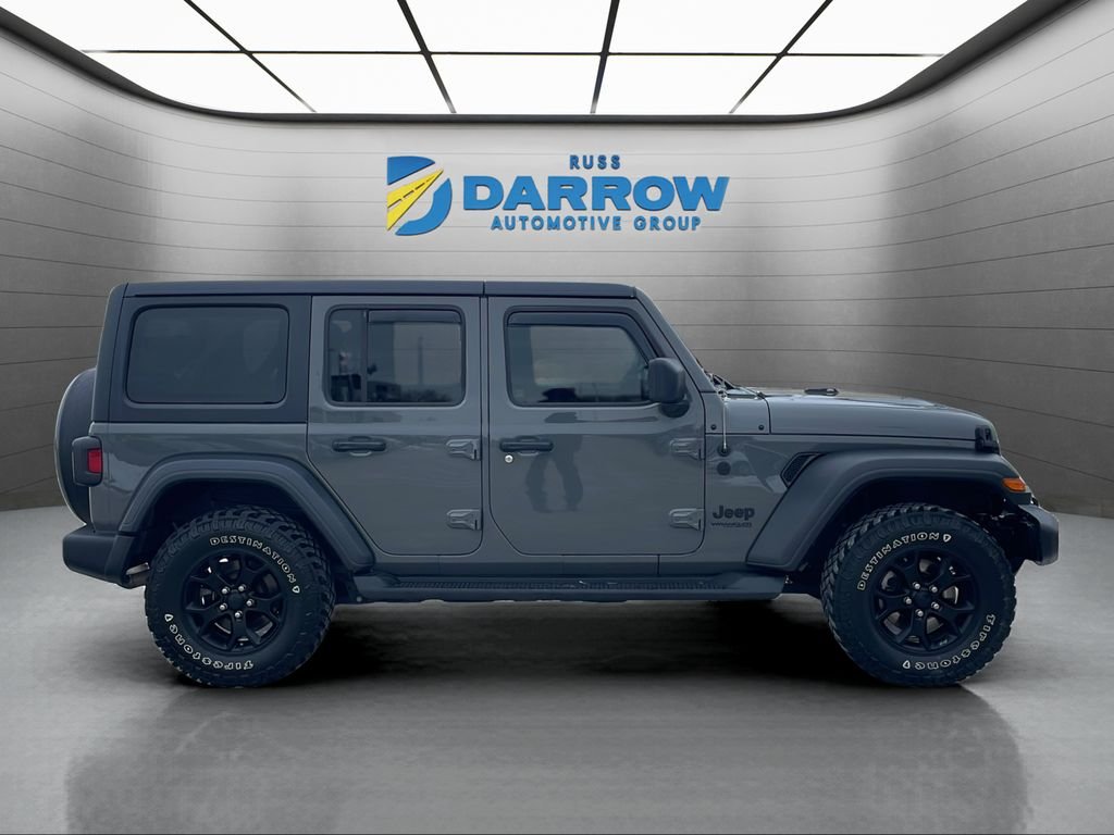 2020 Jeep Wrangler Unlimited Willys Sting-Gray Clearcoat 4WD 3.6L V6 24V VVT 8-Speed Automatic Bluetooth connection for mobile phone, rear back-up camera with display, trailer tow package. Includes exclusive membership status in the Russ Darrow Rewards Program. Earn points for every dollar spent on goods and services at any Russ Darrow location, plus extra points if purchasing packages with the Finance office. Use these points on your next new or used vehicle purchase at any Russ Darrow Dealership. You will earn $10 for every 1,000 points redeemed, up to a maximum redemption of $500 per transaction. For more detailed information visit russdarrowrewards.com. *tax, title, license, fees and any dealer's ads not included in sale price.