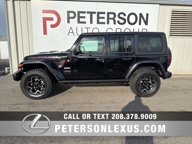 Black Clearcoat 2020 Jeep Wrangler Unlimited Rubicon 4WD One Owner, 1-Year SiriusXM Guardian Trial, 240 Amp Alternator, 4G LTE Wi-Fi Hot Spot, 5-Year SiriusXM Traffic Service, 5-Year SiriusXM Travel Link Service, 7 & 4 Pin Wiring Harness, 700 Amp Maintenance Free Battery, 8.4" Radio & Premium Audio Group, 8.4" Touchscreen Display, Alpine Premium Audio System, Auto-Dimming Rear-View Mirror, Auxiliary Switches, Black 3-Piece Hard Top, Black/Body Color Grille, Blind Spot & Cross Path Detection, Class II Receiver Hitch, Cold Weather Group, Daytime Running Lamps LED Accents, Dual Top Group, Emergency/Assistance Call, For Details, Visit DriveUconnect.com, Freedom Panel Storage Bag, Front LED Fog Lamps, GPS Navigation, HD Radio, Heated Front Seats, Heated Steering Wheel, Jeep Trail Rated Kit, LED Lighting Group, LED Reflector Headlamps, LED Taillamps, MOPAR Bumper Hoop, MOPAR Hinge-Gate Reinforcement, No Soft Top, ParkSense Rear Park Assist System, Premium Black Sunrider Soft Top w/Dual Top Group, Quick Order Package 28Y Recon, Radio: Uconnect 4C Nav w/8.4" Display, Rear Window Defroster, Rear Window Wiper/Washer, Recon Badge, Recon Decals, Recon Package, Red Seat Belts, Safety Group, SiriusXM Traffic Plus, SiriusXM Travel Link, Steel Bumper Group, Steel Front Bumper, Steel Rear Bumper, Trailer Tow & HD Electrical Group, Wheels: 17" x 7.5" Machined/Painted Black, Wrapped I/P Bezels w/Red Stitch. Here at Peterson Lexus we are proud to offer you Treasure Valleys finest selection of new and quality pre-owned vehicles, With our upfront pricing, fully transparent buying process and our customer focused sales team, you can be assured that there is no better place to shop for your next car, truck or SUV. For over 90 years The Peterson Family has be serving the people and communities of Boise, Meridian, Eagle, Nampa, Caldwell, Kuna, Star, Middleton, Homedale, Marsing, Melba, Murphy, Parma, Payette, New Plymouth, Weiser, Cambridge, Council, New Meadows, McCall, Donnelly, Cascade, Garden Valley, Lowman, Banks, Idaho City, Horseshoe Bend, Grand View, Bruneau, Mountain Home, Mountain Home AFB, Glens Ferry, Hagerman, Twin Falls, Fairfield, Hailey, Ketchum and Sun Valley.