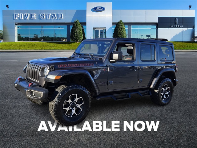 2020 Jeep Wrangler Unlimited Rubicon 4WD 8-Speed Automatic 3.6L V6 24V VVT. Accident free CarFax!, Back up camera, Bluetooth, Apple CarPlay, Android Auto, Remote Start, Wrangler Unlimited Rubicon, 4D Sport Utility, 3.6L V6 24V VVT, 8-Speed Automatic, 4WD, Blind Spot & Cross Path Detection, LED Taillamps, ParkSense Rear Park Assist System, Quick Order Package 24R, Safety Group. Everyone in our staff here at Five Star Ford / Lincoln of Warner Robins is devoted to helping and serving our customers with all aspects your vehicle needs. We strive to always offer you the highest quality vehicles which undergo an extensive service and safety inspection and then see to it that we offer the most competitive pricing through Real-Time, Market Based Pricing for both our New AND Preowned vehicles. We understand that all customers do extensive research on both the car AND the Store that they choose to do business with and our promise to you is that we will ALWAYS do everything within our power to exceed your expectations with our Vehicles, our Pricing AND our Customer Service!! Please allow us the opportunity to show you why we are your best choice for all your automotive needs! Call, Click or come on by the store today! www.fivestarfordga.com All prices to include any and all factory or certificate issued rebates. All vehicles plus tax & title. Used cars may be subject to recalls for safety issues that have not been repaired. Visit www.safercar.gov for current vehicle recall information.
