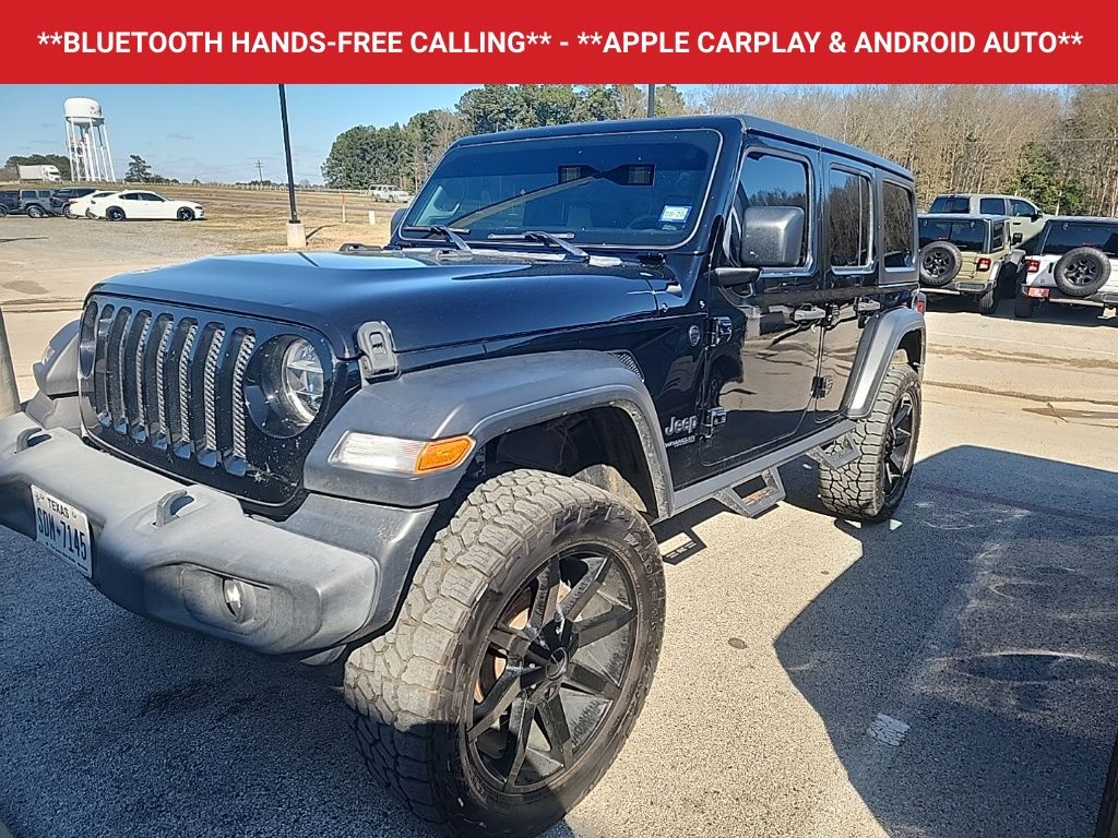 **Remote Start**, **Backup Camera**, **Bluetooth Hands-Free Calling**, **Apple CarPlay & Android Auto**, **4x4**, **Upgraded Wheels**. Recent Arrival! Black Clearcoat 2020 Jeep Wrangler Unlimited Willys 4WD 8-Speed Automatic 3.6L V6 24V VVT. This vehicle is located at EAG CDJR Carthage but can be made available upon request. The price listed does not include tax, title, license, or documentation fees ($225).