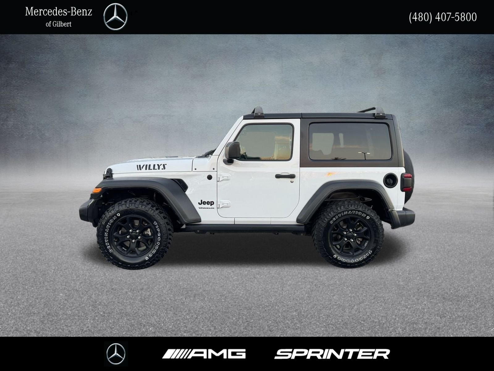 Bright White Clearcoat 2020 Jeep Wrangler Willys 4WD 8-Speed Automatic 3.6L V6 24V VVT. Clean CARFAX. As the winner of the prestigious Mercedes-Benz Best of the Best Award for 6 consecutive years, our dealership is a cut above the rest. We have the highest level of customer service, the best priced vehicles, and a broader selection of vehicles on our lot than all other dealerships. Get a vehicle at Mercedes-Benz of Gilbert that will ensure you always arrive in style! You've earned this- stop by Mercedes-Benz of Gilbert to make this car yours today! You've earned this- stop by Mercedes-Benz of Gilbert located at 3455 South Gilbert Road, Gilbert, AZ 85297 to make this car yours today!