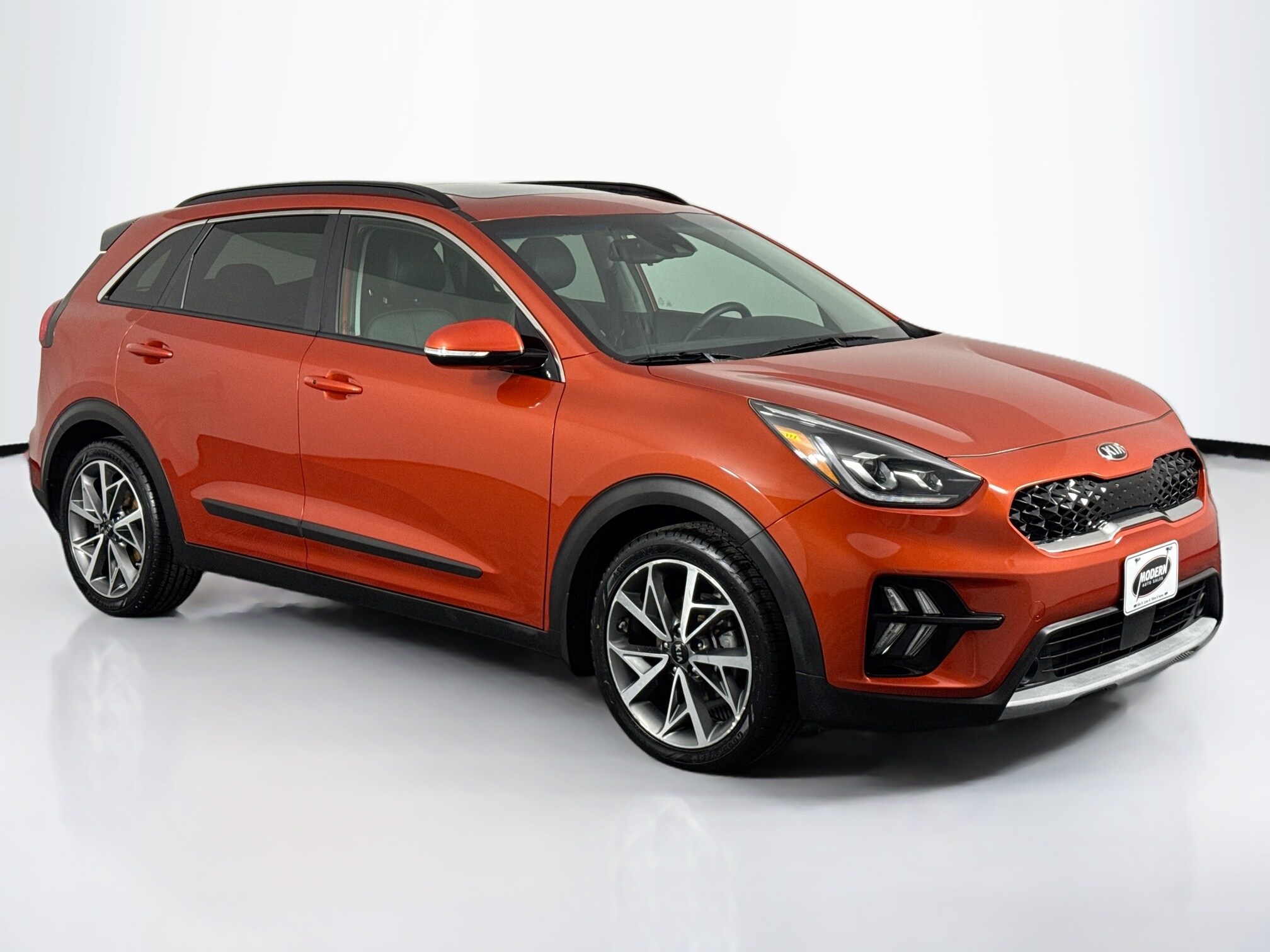 This 2020 Kia Niro Touring Special Edition is anything but ordinary. Dressed in head-turning Solar Orange with matching orange accents inside, this ride has personality for days. Its sporty. Its smart. It sips fuel like a hybrid should but still has that quick, fun feel when you hit the gas. Slide open the sunroof, turn up the premium sound system, and enjoy the drive. Loaded with comfort, packed with safety tech, and with plenty of room for whatever your weekend throws at you this Niro is ready for work, road trips, and everything in between. Don't park it showcase it. See it. Love it. Drive it home.