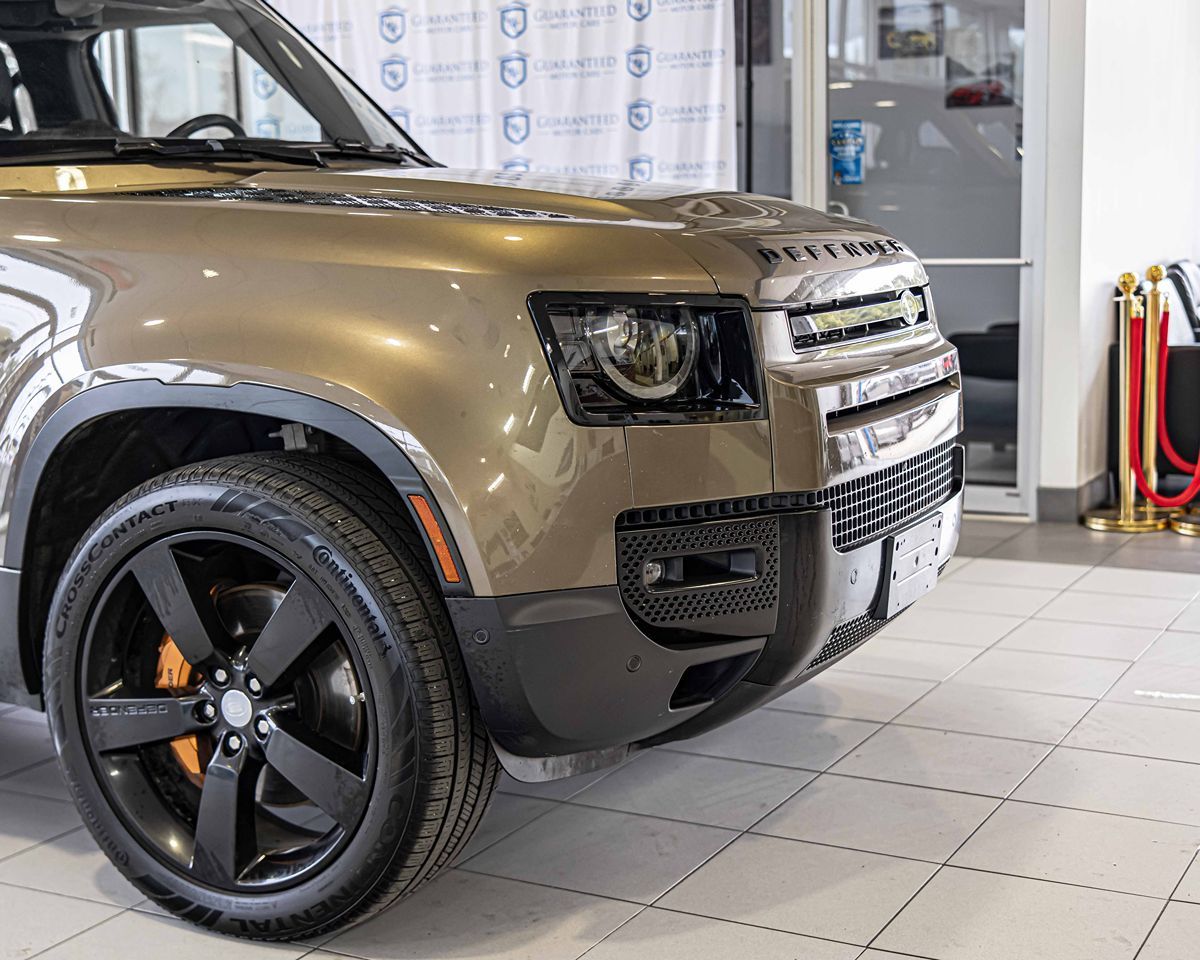 Our exclusive 2020 Land Rover Defender 110 First Edition AWD in Gondwana Stone Metallic marks the return of an SUV legend! Featuring a TurboCharged and electrically SuperCharged 3.0 Liter 6 Cylinder offering 395hp to an 8 Speed Automatic transmission. Thanks to a configurable Terrain Response system, this All Wheel Drive SUV takes on the most demanding conditions with confidence, and it returns nearly 22mpg on the highway. Our Defender also delivers upscale style with premium LED headlights, fog lamps, a panoramic sunroof, 20-inch alloy wheels, First Edition badging, and black accents. Explore in premium comfort with our First Edition cabin that rewards you with heated leather power front seats, a heated leather steering wheel, and an exposed powder-coated cross-car beam that adds robust strength while doubling as a handy shelf. You'll also appreciate the digital advantages of a 12.3-inch digital instrument panel, a 10-inch touchscreen, full-color navigation, Android Auto®, Apple CarPlay®, Bluetooth®, and an 11-speaker Meridian sound system. Land Rover supplies intelligent technology like a surround-view camera system, a digital rearview mirror, automatic braking, lane-keeping assistance, adaptive cruise control, and a blind-spot monitor for peace of mind. A fantastic fusion of form and attitude, our Defender 110 First Edition is a re-imagined icon like no other. Save this Page and Call for Availability. We Know You Will Enjoy Your Test Drive Towards Ownership!