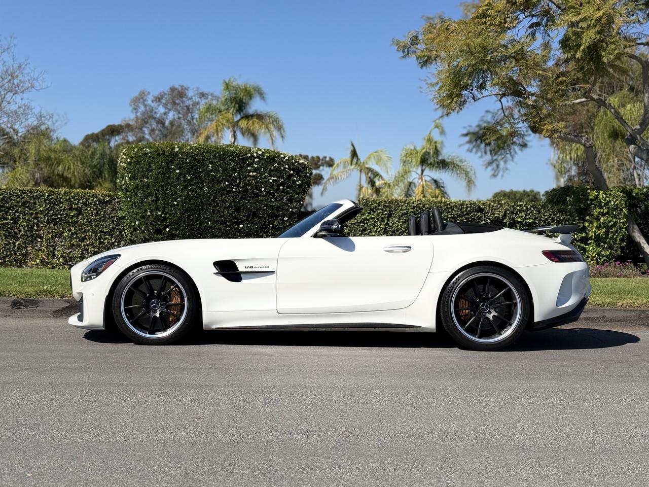 Ranch & Coast Motorsport in Rancho Santa Fe, California is offering this rare, extremely well equipped 2020 Mercedes-Benz GT R Roadster in Manufaktur Exclusive Diamond White Bright Metallic over AMG Black Exclusive Nappa Leather interior with Diamond Stitching for sale. Loaded with options including AMG High Performance Ceramic Composite Braking System, AMG Carbon Fiber Package II, AMG Exterior Carbon Fiber Package I, Convenience Package, Lane Tracking Package, Burmester High End Surround System, Active Distance Assistance Distronic, AMG Carbon Fiber Door Sill Panels, Lane Keep Assist, Blind Spot Assist, Black Dinamica Headliner, AMG Carbon Fiber/Black Piano Lacquer Interior Trim, 19"/20" AMG 5 Twin Spoke Forged Wheels in Black, AMG Carbon Fiber Rear Wing, AMG Carbon Fiber Side Mirrors, AMG Carbon Fiber Rear Diffuser, AMG Carbon Fiber Rocker Panels, AMG Carbon Fiber Side Fender Vents, etc. Ranch and Coast Motorsport is your one stop shop for all European, Specialty, Exotic, Sports, and Luxury cars in Southern California. Shawn Lawler has over 30 years in experience with brands including Porsche, Ferrari, Lamborghini, Land-Rover, McLaren, Bugatti, Maserati, Bentley and Rolls-Royce. We are located in Rancho Santa Fe, 45 minutes south of Newport Beach and 1hr 30 min from Beverly Hills.