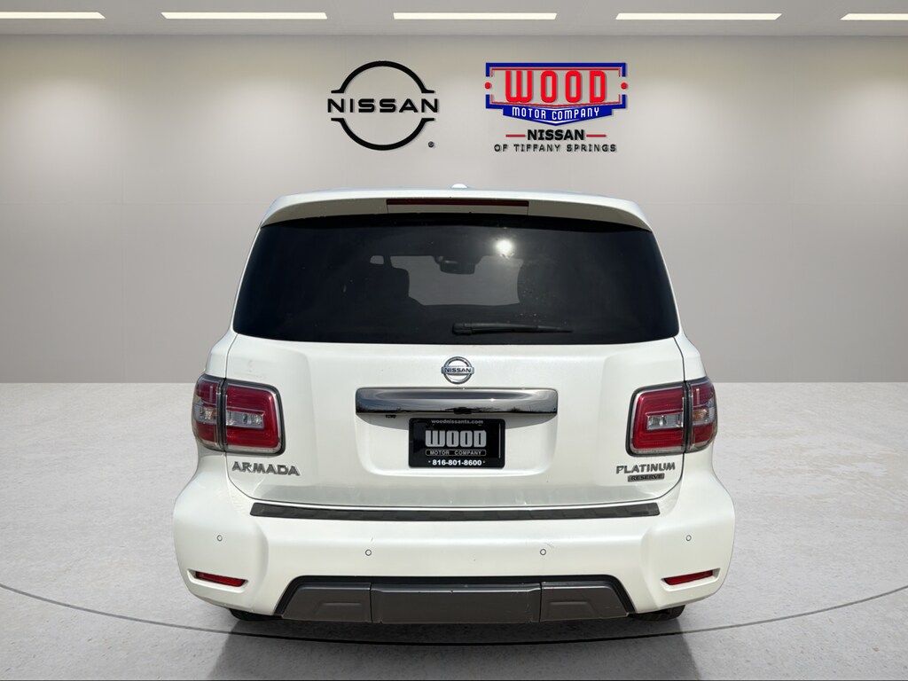 Elevate your driving experience with this exceptional 2020 Nissan Armada Platinum. Boasting a powerful 5.6L V8 engine and 4-wheel drive, this full-size SUV delivers uncompromising performance and capability. The Armada Platinum's thoughtful design and premium features elevate every journey. Enjoy the convenience of the power liftgate, Bose premium audio system, and tri-zone automatic climate control. Stay connected with the NissanConnect infotainment system and navigation. Comfort and safety are paramount, with heated and ventilated front seats, a heated steering wheel, and a suite of advanced driver assistance technologies. The Armada's impressive towing capacity and rugged 4WD system make it a versatile companion for your adventures. This Armada Platinum's special Pearl White exterior paint and dark chrome accents exude a refined, sophisticated presence. Inside, the two-tone leather-appointed seating and premium materials create an inviting, luxurious atmosphere. Whether you're navigating the city streets or exploring the great outdoors, the 2020 Nissan Armada Platinum delivers the perfect blend of power, technology, and refinement. Experience the difference for yourself and schedule a test drive today. We're confident this exceptional SUV will exceed your expectations.