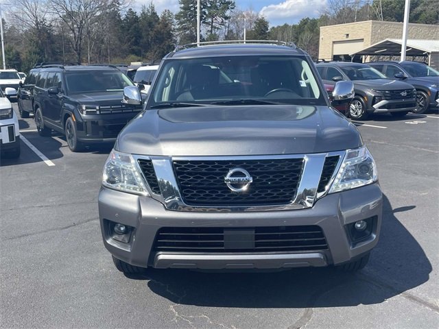 Our Clean Carfax 2020 Nissan Armada SL 4WD lets you drive with confidence as it cruises down both the road and the trail in Gun Metallic! Motivated by a 5.6 Liter V8 that generates 390hp matched to a 7 Speed Automatic transmission with Tow/Haul mode to easily handle heavy loads. An auto-leveling rear suspension adds to your capability, and this Four Wheel Drive SUV returns nearly 18mpg on the highway. Our bold Armada comes at you with an aggressive stance, LED lighting, fog lights, 20-inch alloy wheels, a power liftgate, dark-painted roof rails, a sunroof, and running boards to match. Open the door of our SL cabin to enjoy high-end features such as heated leather power front seats, a versatile second row, a power third row, a leather-wrapped steering wheel, dual-zone automatic climate control, and full-size cargo space. Technology makes your life even easier and includes an 8-inch touchscreen display with full-color navigation, Bluetooth, voice recognition, and a 13-speaker Bose premium audio system with HD Radio and SiriusXM compatibility. Nissan shows its dedication to passenger protection by equipping this machine with family-friendly safety measures like a rearview camera, automatic braking, adaptive cruise control, an around-view monitor, parking sensors, hill-start assistance, and more. Our Armada SL is a tough SUV with upscale features that are hard to ignore! Save this Page and Call for Availability. We Know You Will Enjoy Your Fort Mill Hyundai Test Drive Towards Ownership! All advertised prices excludes government fees, taxes, installed accessories and dealer recon. Advertise price includes $625 closing fee. Call Ray today to check availability 855-547-2416.