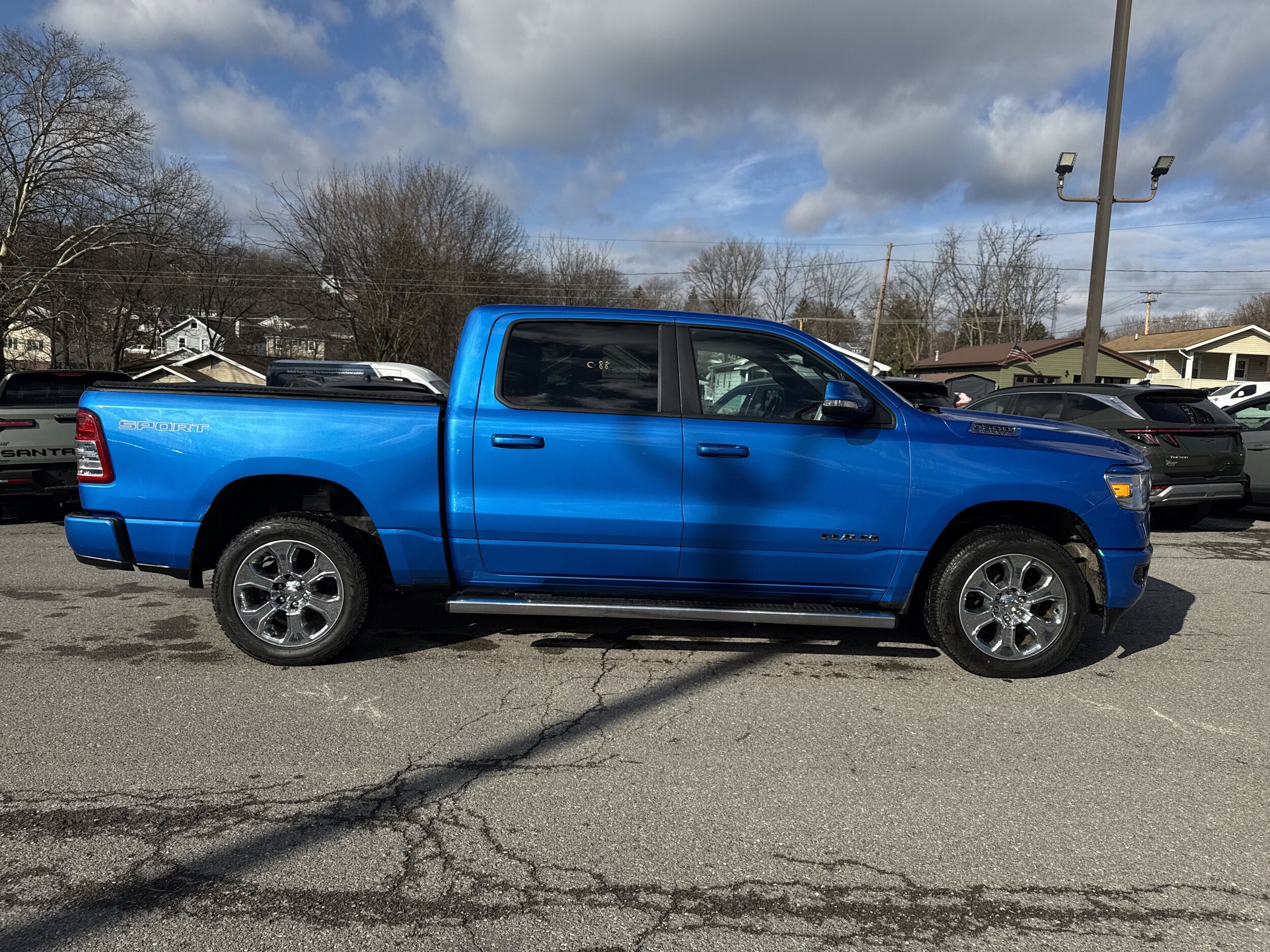 Get behind the wheel of our One Owner, Accident Free 2020 Ram 1500 Big Horn Crew Cab 4x4 with the Level 2 Equipment and Sport Appearance Packs that's rugged and built for adventure in Hydro Blue Pearlcoat! Motivated by a 5.7 Liter HEMI V8 offering 395hp paired with an 8 Speed Automatic transmission for optimal performance and towing capability. This Four Wheel Drive truck also has a composed ride and takes you further down the road with confidence as you score nearly 22mpg on the highway. Check out our Big Horn and notice the fog lamps, power heated mirrors, distinctive grille, 20-inch aluminum chrome clad wheels, Class IV hitch, running boards, bedliner, and locking tailgate. You'll make a big impression with features like those! Climb inside our Big Horn cabin that greets you with heated cloth seats, a heated leather-wrapped steering wheel, air conditioning, pushbutton ignition, keyless entry, power-adjustable pedals, rear power sliding rear window, Universal garage door opener, and remote start. Along with a Uconnect infotainment system with an 8.4-inch display is display. Our Ram has undergone rigorous testing and offers priceless peace of mind with a backup camera, stability/traction control, ABS, trailer-sway control, hill-start assist, tire pressure monitoring, and an advanced airbag system. Reward yourself with iconic performance, capability, and comfort in this 1500 Big Horn. Save this Page and Call for Availability. We Know You Will Enjoy Your Test Drive Towards Ownership!