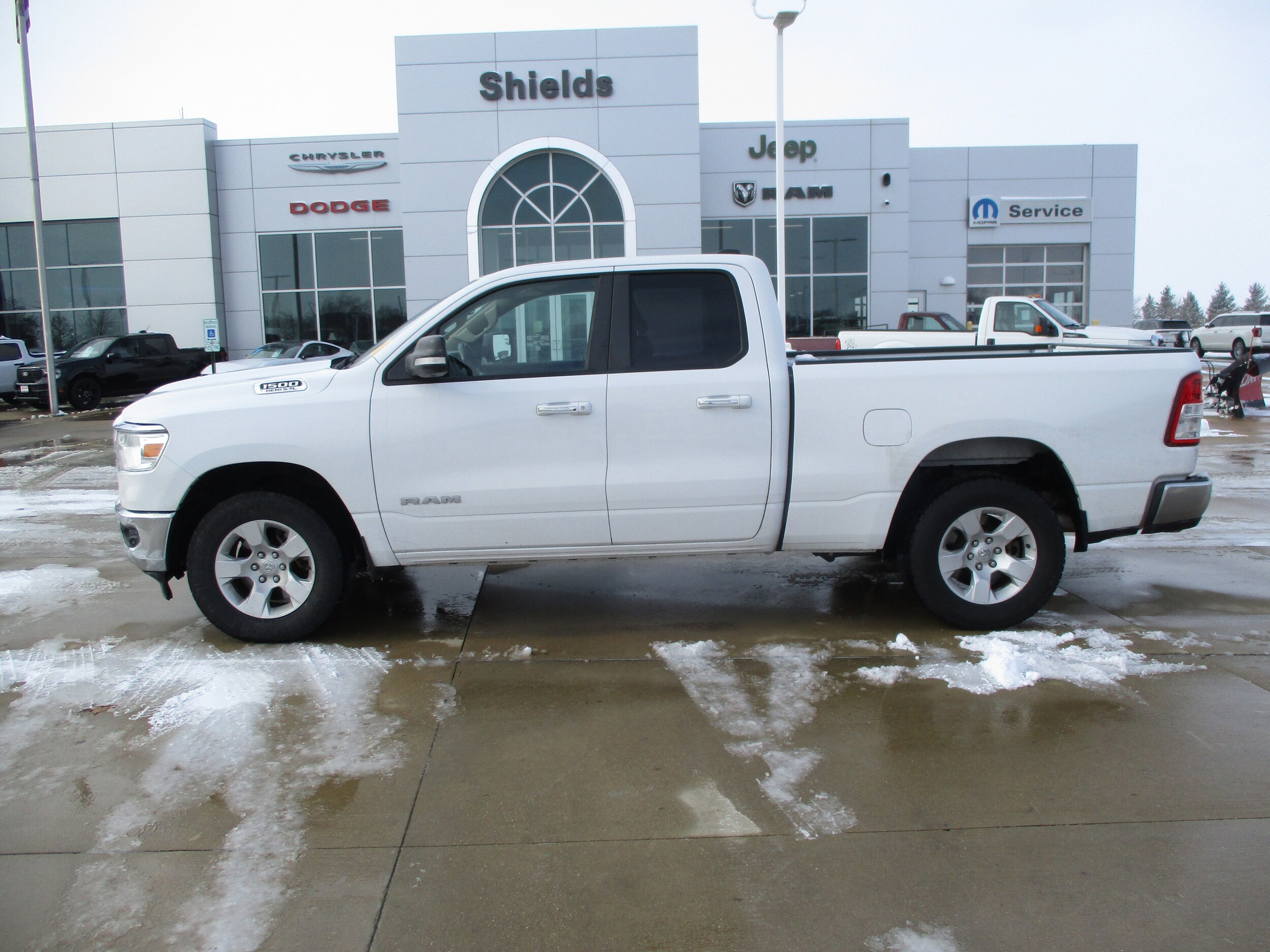 From home to the job site, this White 2020 Ram 1500 Big Horn muscles through any terrain. The tough Regular Unleaded V-8 5.7 L/345 engine delivers mind-blowing torque whenever you need it. The road is yours in this vehicle. It's loaded with the following options: Power Rear Windows, Power Door Locks w/Autolock Feature, Front Fog Lamps, Deep Tinted Glass, Cruise Control w/Steering Wheel Controls, ABS And Driveline Traction Control, TRANSMISSION: 8-Speed Automatic (8HP75), REMOTE START SYSTEM, RADIO: Uconnect 4 w/8.4" DISPLAY, and PARKSENSE FRONT/REAR PARK ASSIST W/STOP. Live a little - stop by Shields Auto Center located at 850 Broadmeadow Rd, Rantoul, IL 61866 to make this truck yours today! No haggle, no hassle.