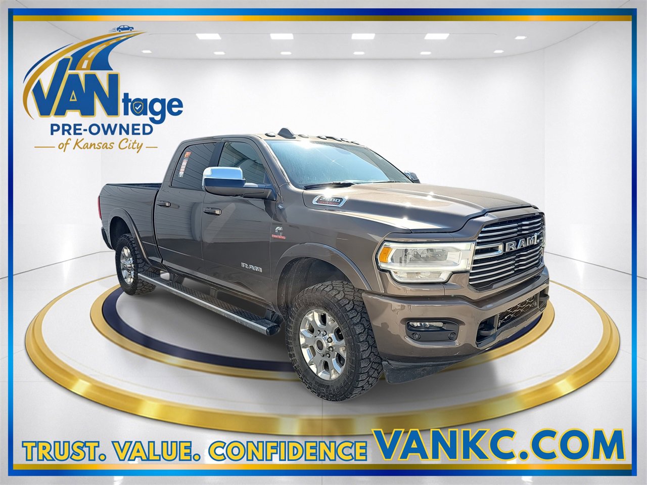 2020 Ram 2500 Laramie: The Ultimate Powerhouse for Heavy-Duty Enthusiasts with Unmatched Performance, Luxurious Comfort, and Robust Safety Features in a Stunning Walnut Brown Metallic Finish. Step into the world of rugged sophistication with the 2020 Ram 2500 Laramie, a used powerhouse that combines robust performance with luxurious comfort. This beast is driven by a formidable Cummins 6.7L I6 Turbodiesel engine, ensuring you have the muscle to tackle any terrain with its four-wheel drive capability. The 6-speed automatic transmission delivers seamless power, making every drive a smooth experience. Wrapped in a stunning RV Match Walnut Brown Metallic Clearcoat, this 4D Crew Cab is not just about performance; it's a statement of style and strength. Safety is paramount, with features like adjustable pedals, automatic headlights, and a comprehensive airbag system providing peace of mind. The integrated turn signal mirrors and stability control enhance your driving confidence, whether you're towing heavy loads or cruising through city streets. Inside, the Laramie trim offers a world of comfort with heated front seats, a heated steering wheel, and power-adjustable lumbar support for both driver and passenger. The premium sound system and smart device integration ensure you're connected and entertained on every journey. Experience the perfect blend of power, luxury, and safety with the 2020 Ram 2500 Laramie, designed for those who demand more from their truck. Be sure to call or visit Van Chevrolet MO to discover more. Your new favorite vehicle awaits - don't let someone else drive it home!