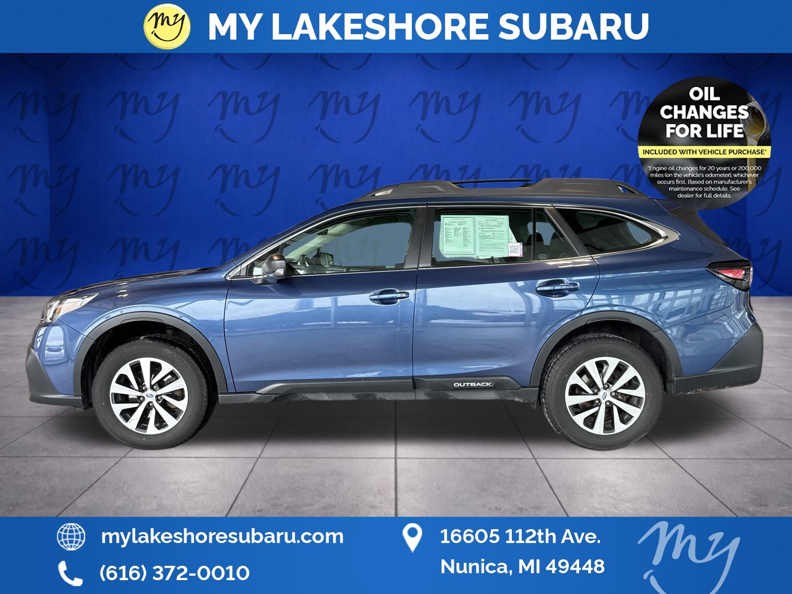 Outback 2.5i, Abyss Blue Pearl, all wheel drive, Apple CarPlay & Android Auto, EyeSight Driver Assist, lane departure warning, local trade, oil changes for life. Abyss Blue Pearl 2020 Subaru Outback 2.5i AWD CVT Lineartronic 2.5L 4-Cylinder DOHC 16V. My Lakeshore Subaru is your #1 choice in Michigan to get the best price on used vehicles and best value for your trade. The My Lakeshore Subaru team is ready to provide you with a world-class experience, ensuring that you find the perfect vehicle that fits all your needs. Every vehicle has been through a full safety inspection completed by certified technicians and fully detailed. Recent Arrival! Odometer is 3545 miles below market average! 26/33 City/Highway MPG. My Lakeshore Subaru is proud to service customers saving you time & money on any pre-owned vehicle! Buy from My Lakeshore Subaru in Nunica, MI and you will receive a best-in-class experience.