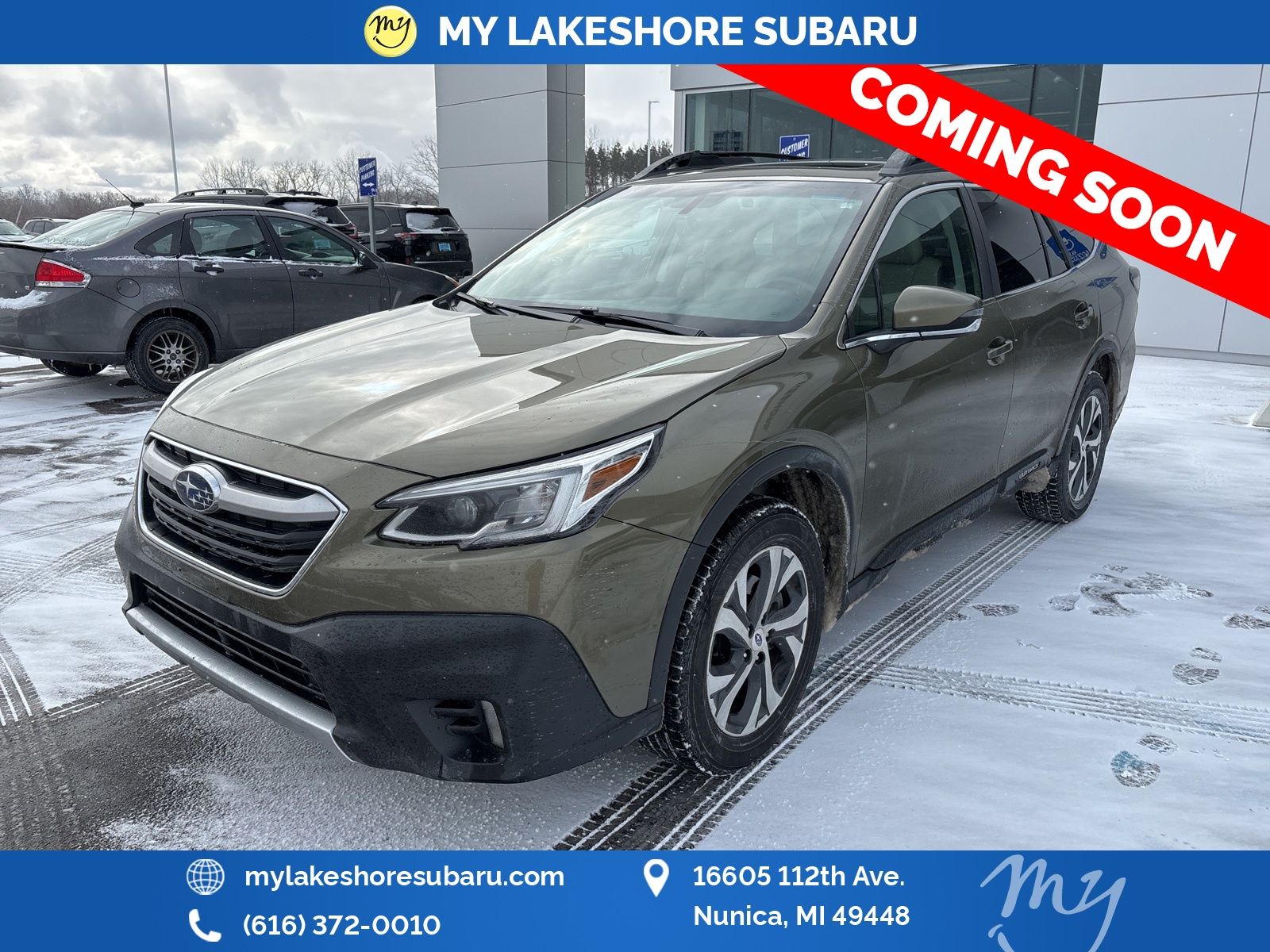 Outback Limited, Autumn Green Metallic, all wheel drive, Apple CarPlay & Android Auto, backup camera, blind spot monitoring, EyeSight Driver Assist, lane departure warning, leather heated power seats, local trade, moonroof, oil changes for life, Driver Focus (Distraction Mitigation System), harman/kardon Surround Sound Speaker System, heated steering wheel, Power Moonroof, Power Moonroof & HSW & Navigation System, Radio: Subaru STARLINK 11.6" Multimedia Nav System. Autumn Green Metallic 2020 Subaru Outback Limited AWD CVT Lineartronic 2.5L 4-Cylinder DOHC 16V. My Lakeshore Subaru is your #1 choice in Michigan to get the best price on used vehicles and best value for your trade. The My Lakeshore Subaru team is ready to provide you with a world-class experience, ensuring that you find the perfect vehicle that fits all your needs. Every vehicle has been through a full safety inspection completed by certified technicians and fully detailed. Recent Arrival! Odometer is 39755 miles below market average! 26/33 City/Highway MPG.