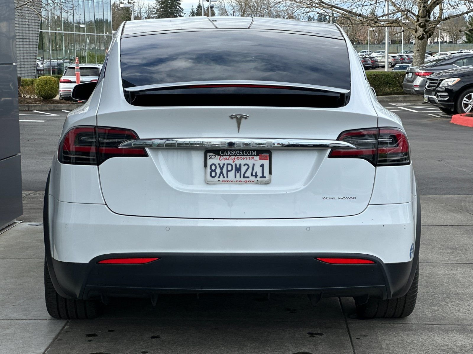 2020 Tesla Model X Long Range White Electric Motor 17 Speakers, 4-Wheel Disc Brakes, 5 Seat Interior, 9.73 Axle Ratio, ABS brakes, Adaptive suspension, Air Conditioning, Alloy wheels, Auto High-beam Headlights, Auto tilt-away steering wheel, Auto-dimming door mirrors, Auto-dimming Rear-View mirror, Auto-leveling suspension, Automatic temperature control, Brake assist, Bumpers: body-color, Compass, Delay-off headlights, Door auto-latch, Driver door bin, Driver vanity mirror, Dual front impact airbags, Dual front side impact airbags, Electronic Stability Control, Exterior Parking Camera Rear, Four wheel independent suspension, Front anti-roll bar, Front Bucket Seats, Front Center Armrest, Front dual zone A/C, Front fog lights, Front reading lights, Fully automatic headlights, Garage door transmitter: Homelink, Genuine wood console insert, Genuine wood dashboard insert, Genuine wood door panel insert, Head restraints memory, Heated door mirrors, Heated front seats, Heated rear seats, Heated steering wheel, Illuminated entry, Knee airbag, Leather steering wheel, Low tire pressure warning, Memory seat, Navigation System, Occupant sensing airbag, Outside temperature display, Overhead airbag, Passenger door bin, Passenger vanity mirror, Power adjustable front head restraints, Power door mirrors, Power driver seat, Power Liftgate, Power passenger seat, Power steering, Power windows, Premium Audio System, Premium Seat Trim, Radio data system, Rain sensing wipers, Rear anti-roll bar, Rear reading lights, Rear side impact airbag, Rear window defroster, Remote keyless entry, Security system, Speed control, Speed-sensing steering, Speed-Sensitive Wipers, Split folding rear seat, Spoiler, Steering wheel memory, Steering wheel mounted A/C controls, Steering wheel mounted audio controls, Telescoping steering wheel, Tilt steering wheel, Traction control, Trip computer, Variably intermittent wipers, Wheels: 20" x 9.0J Front & 20" x 9.5J Rear Silver. Clean CARFAX. Priced below KBB Fair Purchase Price! Our Best Price Up Front, No Games or Gimmicks. Our advertised price is for a retail type purchase and may not be available for Fleet or Commercial use type purchase; please call us to confirm.
