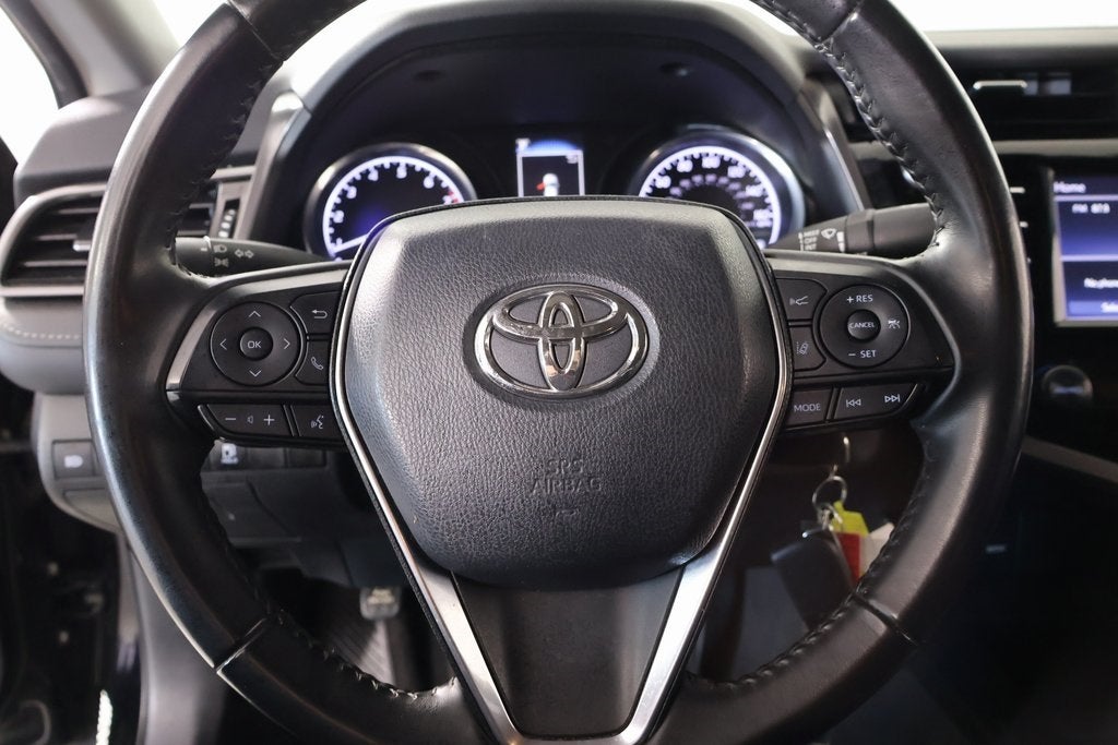 Joe Cooper Chrysler Dodge Jeep Ram of Yukon **405-265-1400** Black 2020 Toyota Camry FWD 2.5L I4 DOHC 16V this vehicle comes equipped with the following options and features. Cooper Certified Certified, Black Cloth, 4-Wheel Disc Brakes, 6 Speakers, ABS brakes, Air Conditioning, Alloy wheels, AM/FM radio: SiriusXM, Apple CarPlay/Android Auto, Auto High-beam Headlights, Automatic temperature control, Black Door Handles, Black Mirror Caps, Black Rear Badges, Black Rear Spoiler, Black Shark-Fin Antenna, Black Window Molding, Brake assist, Bumpers: body-color, Delay-off headlights, Driver door bin, Driver vanity mirror, Dual front impact airbags, Dual front side impact airbags, Electronic Stability Control, Emergency communication system: Safety Connect with 1-year trial, Exterior Parking Camera Rear, Fabric Seat Trim w/SofTex, Four wheel independent suspension, Front anti-roll bar, Front Bucket Seats, Front Center Armrest, Front reading lights, Front Sport Bucket Seats, Fully automatic headlights, Illuminated entry, Knee airbag, Low tire pressure warning, Occupant sensing airbag, Outside temperature display, Overhead airbag, Overhead console, Panic alarm, Passenger door bin, Passenger vanity mirror, Power door mirrors. Cooper Certified Certified. Clean CARFAX. Odometer is 34032 miles below market average! 28/39 City/Highway MPG.