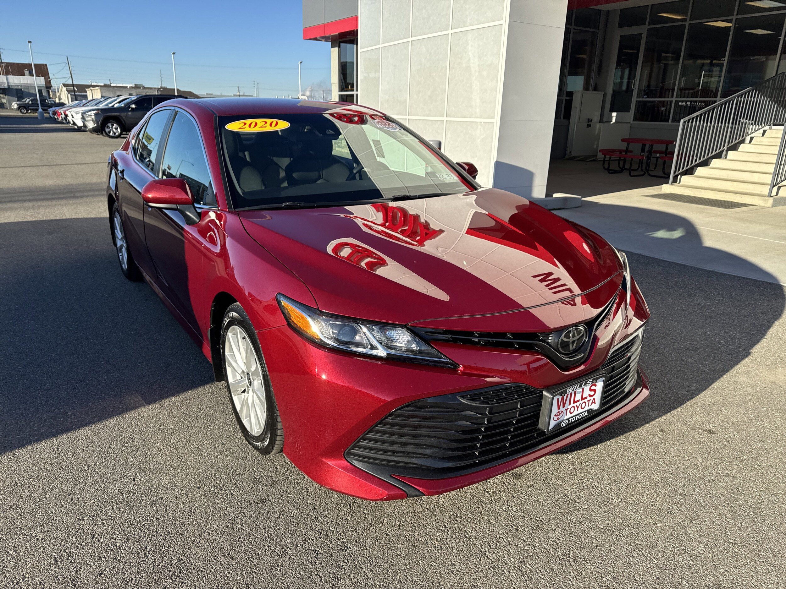 2020 Toyota Camry LE Red FWD 2.5L I4 DOHC 16V 8-Speed Automatic. We include a 90-day/3,000-mile Powertrain Warranty and one year or 15k miles of complimentary oil change, tire rotations and roadside assistance. We spend an average of $1,300 between service and detail work on our pre-owned vehicles. Read our 3,600 Google Verified Reviews to see why we are the highest rated Google reviewed Toyota dealer in Idaho with a 4.9 out of 5.0 rating.