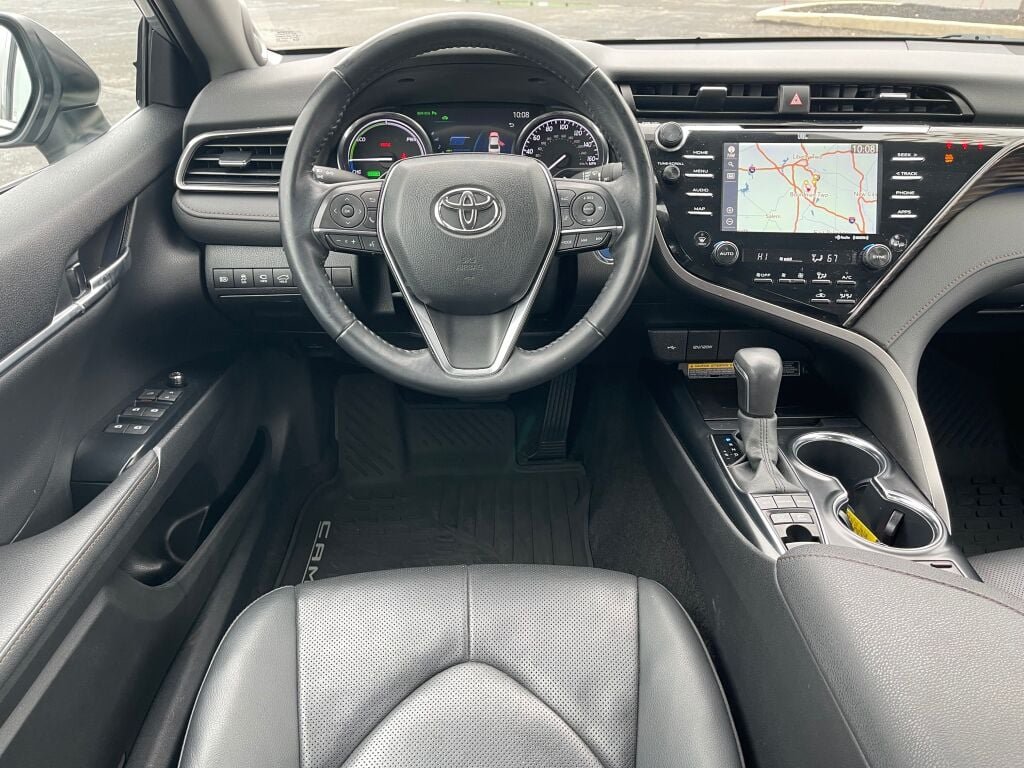 Fuel efficient 47 MPG Hwy/44 MPG City! Heated leather seats, navigation, sunroof, dual zone A/C, keyless start, hybrid, sunroof package, navigation upgrade, driver assist package, all-weather floor liner package, alloy wheels. Toyota Camry Hybrid XLE with Celestial Silver Metallic exterior and black interior features a 4 cylinder engine with 208 HP at 5700 RPM.