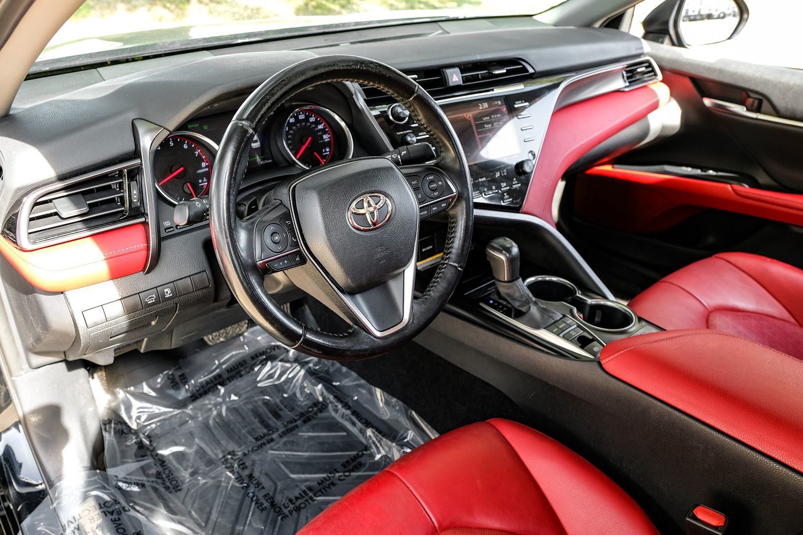 This 2020 Toyota Camry XSE Auto, a Carfax 1-Owner vehicle, offers a perfect combination of sleek style and thrilling performance. Finished in a bold Midnight Black Metallic exterior, this model commands attention on the road. The Cockpit Red interior is both luxurious and modern, providing a sophisticated contrast to the dark exterior. Under the hood, the Camry XSE is powered by a robust 2.5L 4-cylinder engine that offers both efficient fuel economy and a dynamic driving experience. Equipped with the 50 state emissions package, this vehicle meets environmental regulations nationwide, making it an ideal choice for eco-conscious drivers. The XSE Auto (Natl) style brings with it a range of premium features designed for both comfort and convenience. Inside, the thoughtfully designed cabin is loaded with high-end amenities and advanced technology to elevate every drive. The streamlined dashboard and intuitive controls enhance the driving experience, while premium materials add a touch of elegance. With its combination of reliability, innovative features, and stunning aesthetic, this Toyota Camry XSE is an impressive choice for those seeking a refined and exhilarating driving experience.
