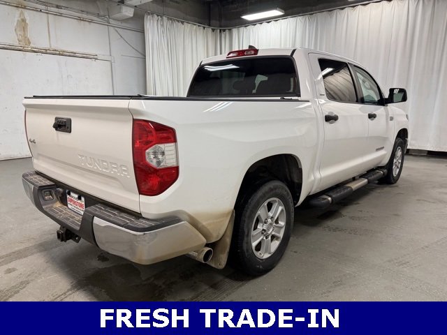 Recent Arrival! White accident free vehicle, only two owners, local trade, non-smoker, clean vehicle history, rear back up camera, rear back up sensors, Bluetooth hands free, spray-in bed liner, 4WD, black with fabric seat trim, 18 styled steel wheels, 9 speakers, ABS brakes, active cruise control, compass, electronic stability control, exterior parking camera rear, fabric seat trim, front bucket seats, heated door mirrors, illuminated entry, low tire pressure warning, radio: Audio Plus AM/FM/HD Radio, remote keyless entry, Safety Connect, SiriusXM Radio, split folding rear seat, tilt steering wheel, traction control. Odometer is 21067 miles below market average! 2020 Toyota Tundra SR5 5.7L V8 4D CrewMax 4WD 6-Speed Automatic Electronic i-Force 5.7L V8 DOHC 32V LEV. We serve Fairmont as well as Mankato, Albert Lea, Minneapolis and St. Paul, Worthington, Spirit Lake and even Sioux Falls! Come see why The Difference is Hawkins!