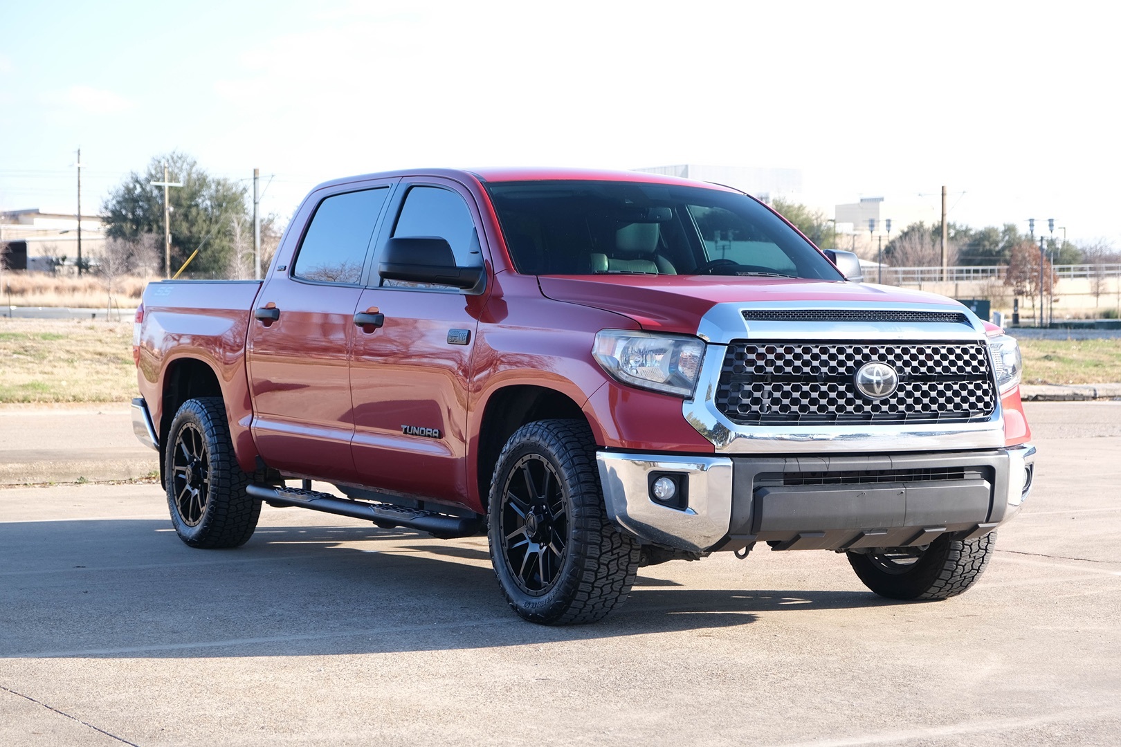 The 2020 Toyota Tundra 2WD SR5 CrewMax, dressed in a striking Barcelona Red Metallic exterior, embodies a bold and commanding presence on the road. Its robust 5.7L V8 engine promises powerful performance, making it a reliable companion for both work and leisure. With a 5.5' bed, the Tundra offers ample space for hauling, whether you're transporting tools or loading up for a weekend adventure. Inside, the truck features a refined Graphite interior that complements its rugged exterior. The SR5 Leather Package enhances luxury and comfort, providing a more sophisticated feel for drivers and passengers alike. The CrewMax cab design ensures generous legroom, making long journeys more pleasurable for all occupants. Additionally, the Tundra is equipped with 50 state emissions compliance, ensuring it meets environmental standards across the United States. This versatile truck combines practical functionality with stylish details, appealing to those who need a dependable vehicle that doesn't compromise on style. Whether towing heavy loads or cruising city streets, the 2020 Toyota Tundra stands ready to deliver a reliable and comfortable drive.