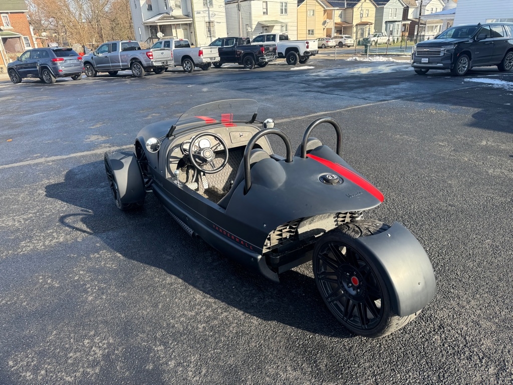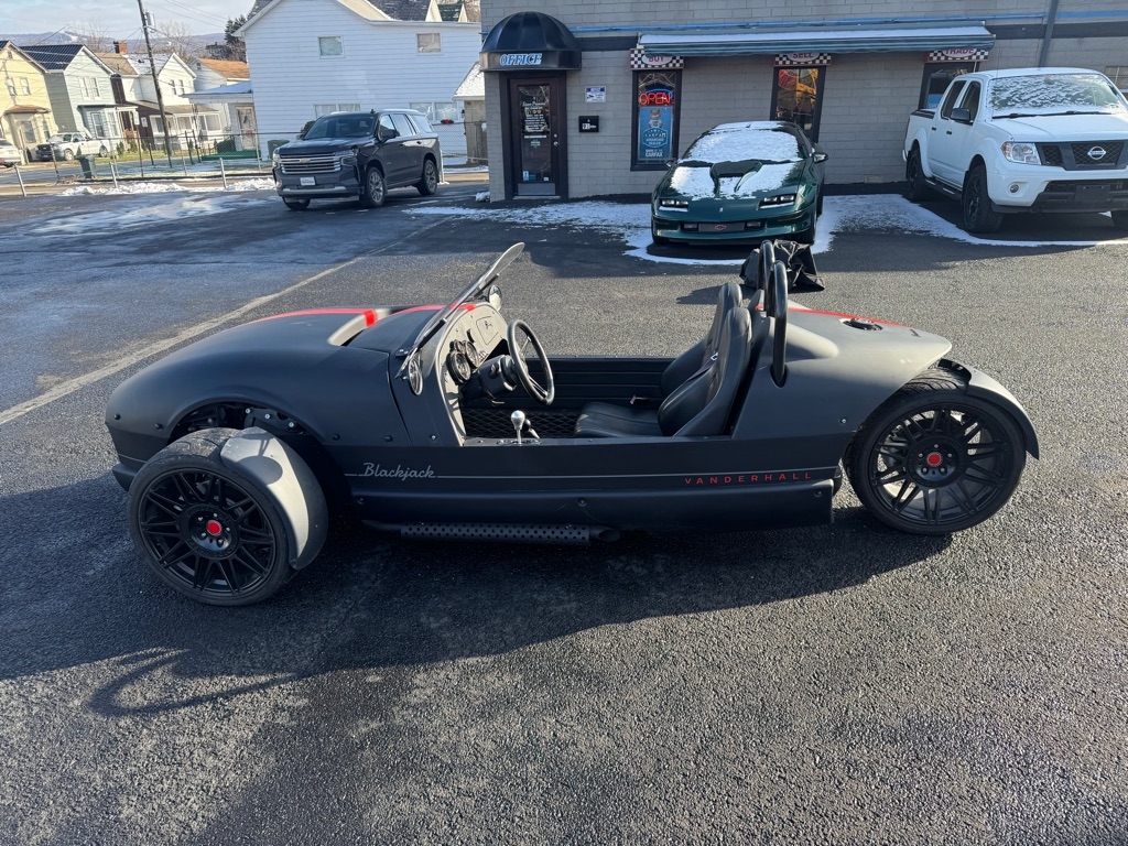 The 2020 Vanderhall Venice Blackjack is a striking three-wheeled roadster that blends eye-catching style with engaging performance. Built by American boutique automaker Vanderhall Motor Works, the Blackjack variant takes the open-air Venice platform and wraps it in a stealthy matte black finish with satin black 18? wheels and matching blackout trim for a bold, minimalist aesthetic that turns heads wherever it goes. Powered by a turbocharged 1.4-liter inline-four engine paired to a six-speed automatic transmission, it delivers around 175 hp and lively throttle response, making the lightweight roadster feel quick and engaging. Its push-rod front suspension and rear swingarm setup provide balanced handling, while features like traction control, power steering, and ABS brakes help keep the ride composed and confidence-inspiring. Inside, the cockpit is sporty and focused, with fixed-back bucket seats upholstered in Black V-Tex, a push-button start, a simple glovebox, and a classic Vanderhall steering wheel framing analog and digital gauges. The Blackjack’s shortened windshield enhances the open-air, speedster feel, reinforcing its blend of retro character and modern engineering. Overall, the 2020 Venice Blackjack is a distinctive, driver-centric ride for enthusiasts who want something unique, exhilarating, and stylishly austere.