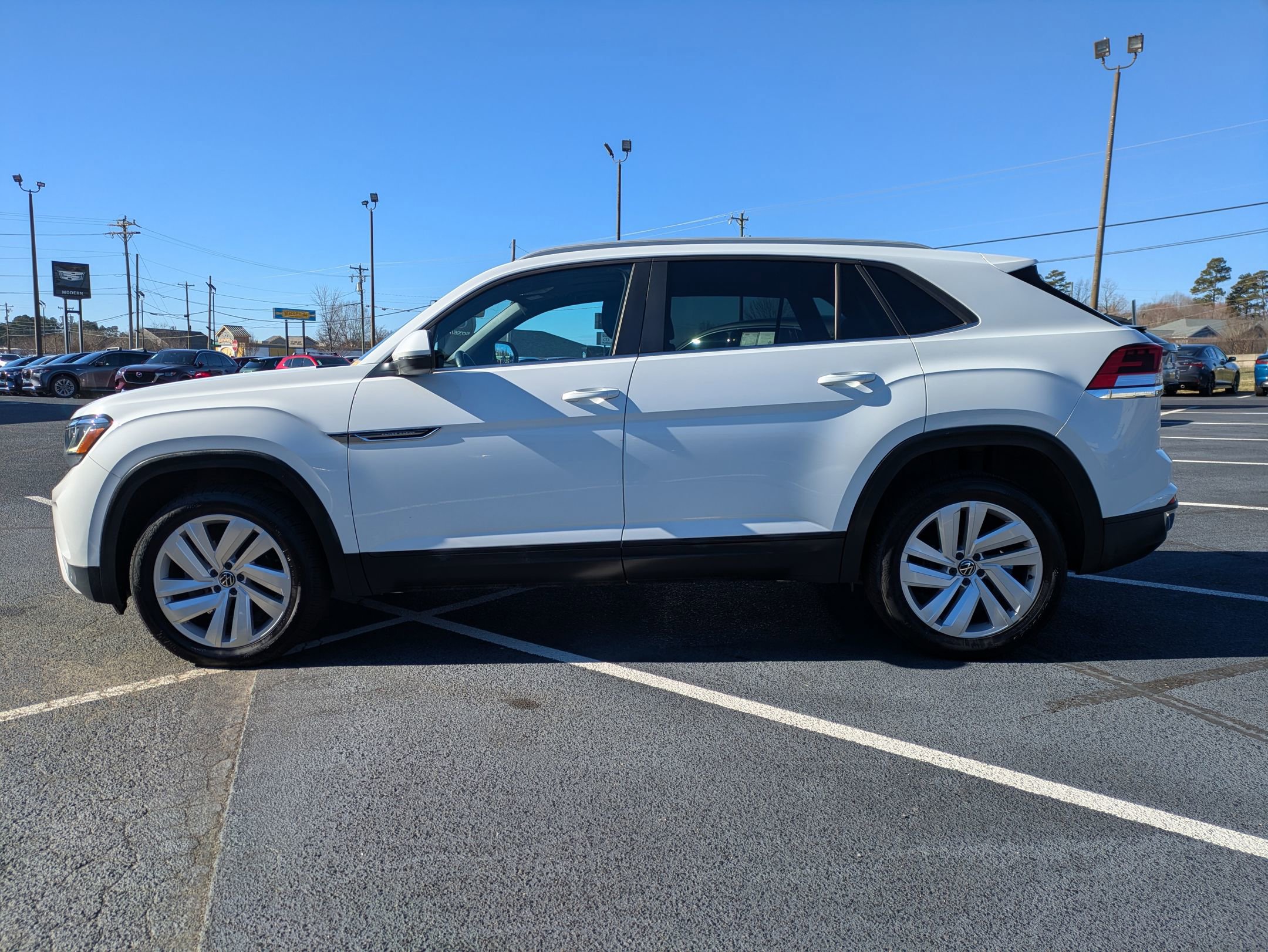 Priced below KBB Fair Purchase Price! Backup camera, Bluetooth, local trade, 150 point SmartBuy inspection, we deliver anywhere, The 2020 Volkswagen Atlas Cross Sport 2.0T SE w/Technology 4Motion features a well-equipped configuration highlighted by a Pure White exterior paired with a Titan Black leatherette interior, an advanced 8-speed automatic transmission with Tiptronic and Volkswagen's 4MOTION all-wheel-drive system for confident handling in varying conditions. This model includes the desirable panoramic sunroof package, enhancing the cabin with natural light and an open feel, along with practical accessories such as Monster Mats, a heavy-duty trunk liner with VW CarGo blocks, and a roadside assistance kit for added convenience and preparedness. It also benefits from Volkswagen prepaid scheduled maintenance covering key services, making ownership easier and more predictable. This Atlas Cross Sport has been well maintained, offers a strong balance of technology, comfort, and utility, and has no accidents reported. Odometer is 19559 miles below market average! Free Carfax available and free delivery in North Carolina. All of our vehicles are priced below market value. We aim to provide a hassle free car buying experience.