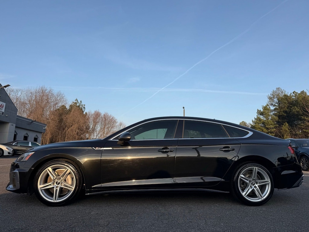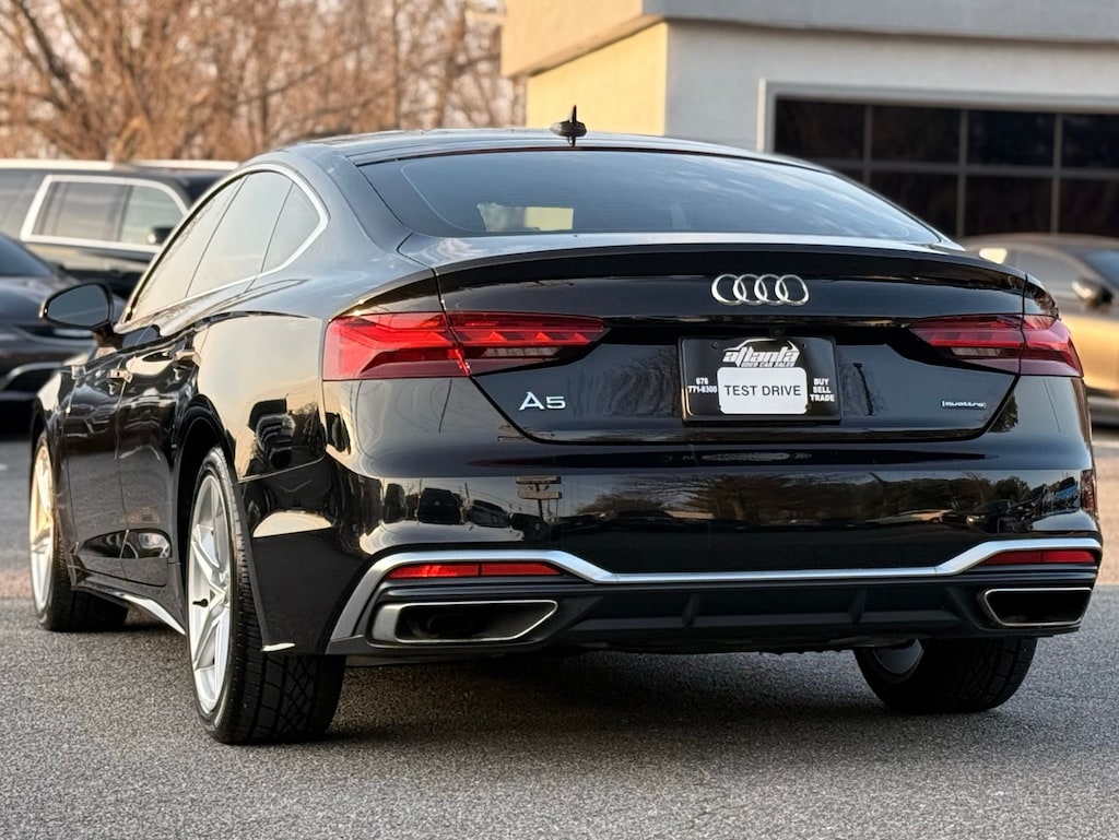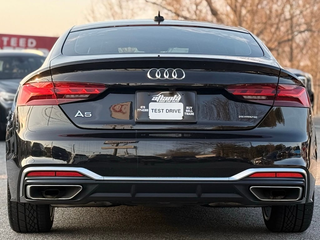 Black 2021 Audi A5 Sportback quattro 7-Speed Automatic S tronic 2.0L 4-Cylinder TFSI kbb, 10 Speakers, 4-Wheel Disc Brakes, ABS brakes, Air Conditioning, Alloy wheels, AM/FM radio, Anti-whiplash front head restraints, Audi smartphone interface with Apple CarPlay, Auto High-beam Headlights, Auto-dimming Rear-View mirror, Automatic temperature control, Brake assist, Bumpers: body-color, Compass, Delay-off headlights, Driver door bin, Driver vanity mirror, Dual front impact airbags, Dual front side impact airbags, Electronic Stability Control, Emergency communication system: Audi connect CARE, Exterior Parking Camera Rear, Four wheel independent suspension, Front anti-roll bar, Front Bucket Seats, Front Center Armrest, Front dual zone A/C, Front fog lights, Front reading lights, Garage door transmitter: HomeLink, Heated door mirrors, Heated Front Bucket Seats, Heated front seats, Illuminated entry, Knee airbag, Leather Seating Surfaces, Leather Shift Knob, Leather steering wheel, Low tire pressure warning, Navigation System, Occupant sensing airbag, Outside temperature display, Overhead airbag, Overhead console, Panic alarm, Passenger door bin, Passenger vanity mirror, Power adjustable front head restraints, Power door mirrors, Power driver seat, Power Liftgate, Power moonroof, Power passenger seat, Power steering, Power windows, Radio data system, Radio: Audi Sound System, Rain sensing wipers, Rear air conditioning, Rear anti-roll bar, Rear reading lights, Rear seat center armrest, Rear window defroster, Remote keyless entry, Speed control, Speed-sensing steering, Speed-Sensitive Wipers, Split folding rear seat, Steering wheel mounted audio controls, Tachometer, Telescoping steering wheel, Tilt steering wheel, Traction control, Trip computer, Turn signal indicator mirrors, Variably intermittent wipers, Wheels: 18" Double-Spoke-Star Design.