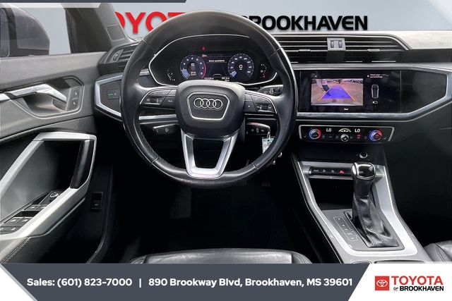 Recent Arrival! Visit Toyota of Brookhaven! Toyota's 2024 Presidents Award Winner and Voted - Best Dealer of SW Mississippi for the past 7 years! We are proud to offer handsome 2021 Audi Q3 in Silver with the following features; 10 Speakers, 3.329 Axle Ratio, 4-Wheel Disc Brakes, ABS brakes, Air Conditioning, Alloy wheels, AM/FM radio, Audi smartphone interface (Apple CarPlay/Android Auto), Auto High-beam Headlights, Automatic temperature control, Brake assist, Bumpers: body-color, Delay-off headlights, Driver door bin, Driver vanity mirror, Dual front impact airbags, Dual front side impact airbags, Electronic Stability Control, Exterior Parking Camera Rear, Four wheel independent suspension, Front anti-roll bar, Front Bucket Seats, Front Center Armrest, Front dual zone A/C, Front fog lights, Front reading lights, Fully automatic headlights, Heated door mirrors, Heated Front Bucket Seats, Heated front seats, Illuminated entry, Knee airbag, Leather Seating Surfaces, Leather Shift Knob, Leather steering wheel, Low tire pressure warning, Occupant sensing airbag, Outside temperature display, Overhead airbag, Overhead console, Panic alarm, Passenger door bin, Passenger vanity mirror, Power door mirrors, Power driver seat, Power Liftgate, Power moonroof, Power passenger seat, Power steering, Power windows, Radio data system, Radio: Audi Sound System, Rain sensing wipers, Rear air conditioning, Rear anti-roll bar, Rear fog lights, Rear reading lights, Rear seat center armrest, Rear window defroster, Rear window wiper, Remote keyless entry, Speed control, Speed-sensing steering, Split folding rear seat, Spoiler, Steering wheel mounted audio controls, Tachometer, Telescoping steering wheel, Tilt steering wheel, Traction control, Trip computer, Turn signal indicator mirrors, Variably intermittent wipers, and Wheels: 18" 5-Arm Design. At Toyota of Brookhaven we make every purchase easy and stress-free. Our exceptional customer service and commitment to going the extra mile set us apart from the rest. Schedule a test drive today by calling 601-823-7000 or just drop on in and speak with one of our experienced client advisors. See all of our vehicle we have in inventory at www.toyotaofbrookhaven.com!!!