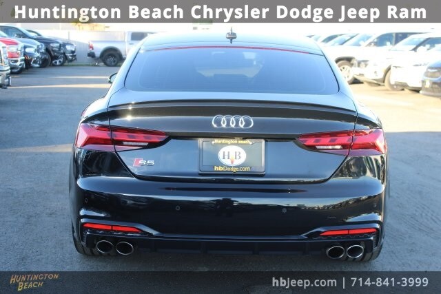 2021 Audi S5 Sportback Mythos Black Metallic 8-Speed Automatic with Tiptronic 3.0L TFSI Bluetooth wireless / hands free, back up camera, leather, 2 rear USB charge ports, Active Lane Assist, Adaptive Cruise Control w/Traffic Jam Assist, Audi Phone Box, Audi Virtual Cockpit Plus, Black Exterior Trim, Black Optic Package, Convenience Package, Hands-On Detection Steering Wheel, High-Gloss Black Exterior Mirror Housings, Leatherette Covered Center Console & Door Armrests, Power Folding Exterior Mirrors, Premium Plus Package, Red Brake Calipers, S Sport Package, Sport Adaptive Damping Suspension, Sport Rear Differential, Top View Camera System, Wheels: 20" 5-Twin-Spoke Polygon Design. 20/28 City/Highway MPG. Our vehicles are value priced and move quickly. Be sure to call us to confirm availability and to schedule a hassle free test drive! We are located at: 16701 Beach Blvd, Huntington Beach, CA 92647. All Pricing and Advertised Prices for any/all vehicles offered for sale does not include dealer installed accessories which can be purchased for an additional cost. We only provide 4 gallons of gas at purchase. No sales to dealers, brokers or exporters. For out of state purchase, customers must be present to purchase. If shipping is required, dealership must facilitate; no exceptions. Please contact us for special multi-vehicle or fleet pricing. Prices are plus government fees and taxes, any finance charges, $85 documentary fee, $33 electronic registration fee, any emission testing charge and $1.75 per new tire state tire fee. All vehicles are subject to prior sale. We do not take deposits on vehicles. Leasing & financing available on approved credit. Trade-ins accepted. The estimated selling price that appears after calculating dealer offers is for informational purposes, only. See dealer for qualifications and complete details. Images, prices, and options shown, including vehicle color, trim, options, pricing and other specifications are subject to availability, incentive offerings, current pricing and credit worthiness. We offer a 3 day unconditional money back guarantee on all vehicles. This $250 option provides the peace of mind of being able to bring the car back for a full refund with no questions asked. Price, product or you just change your mind!