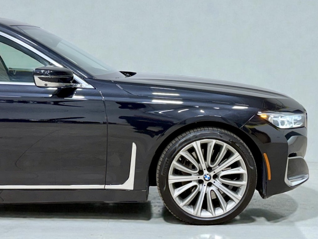 The Carfax 1-Owner 2021 BMW 7 Series 750i xDrive Sedan is a prime blend of luxury and performance, distinguished by its striking Black Sapphire Metallic exterior. The sophisticated allure continues inside with a refined Ivory White/Black interior, offering both style and comfort. At the heart of this luxury sedan is a powerful 4.4L 8-cylinder engine, ensuring an exhilarating driving experience with its impressive performance capabilities. Equipped with an intuitive all-wheel drive system, this 750i xDrive delivers exceptional handling regardless of road conditions. The advanced driving assistance features like active cruise control and forward collision warning provide added peace of mind during your journeys. A heads-up display keeps crucial information front and center, while the blind spot monitor and parking assist enhance safety and convenience. With the cutting-edge executive package and driving assistance professional package, you have access to unparalleled levels of comfort and technological sophistication. Inside the cabin, luxury amenities such as heated and ventilated front seats, integral active steering, and wireless charging keep you comfortable and connected. High-quality entertainment is at your fingertips with the seamless integration of Bluetooth technology. The robust 20" x 8.5" front and 20" x 10" rear V-spoke bi-color wheels add an aesthetic flair to this elegant vehicle. Further enhancing its premium appeal, rain sensing wipers and the advanced parking assist feature make every drive smoother. This BMW 7 Series model offers a truly luxurious experience for those who appreciate the blend of performance, technology, and comfort.